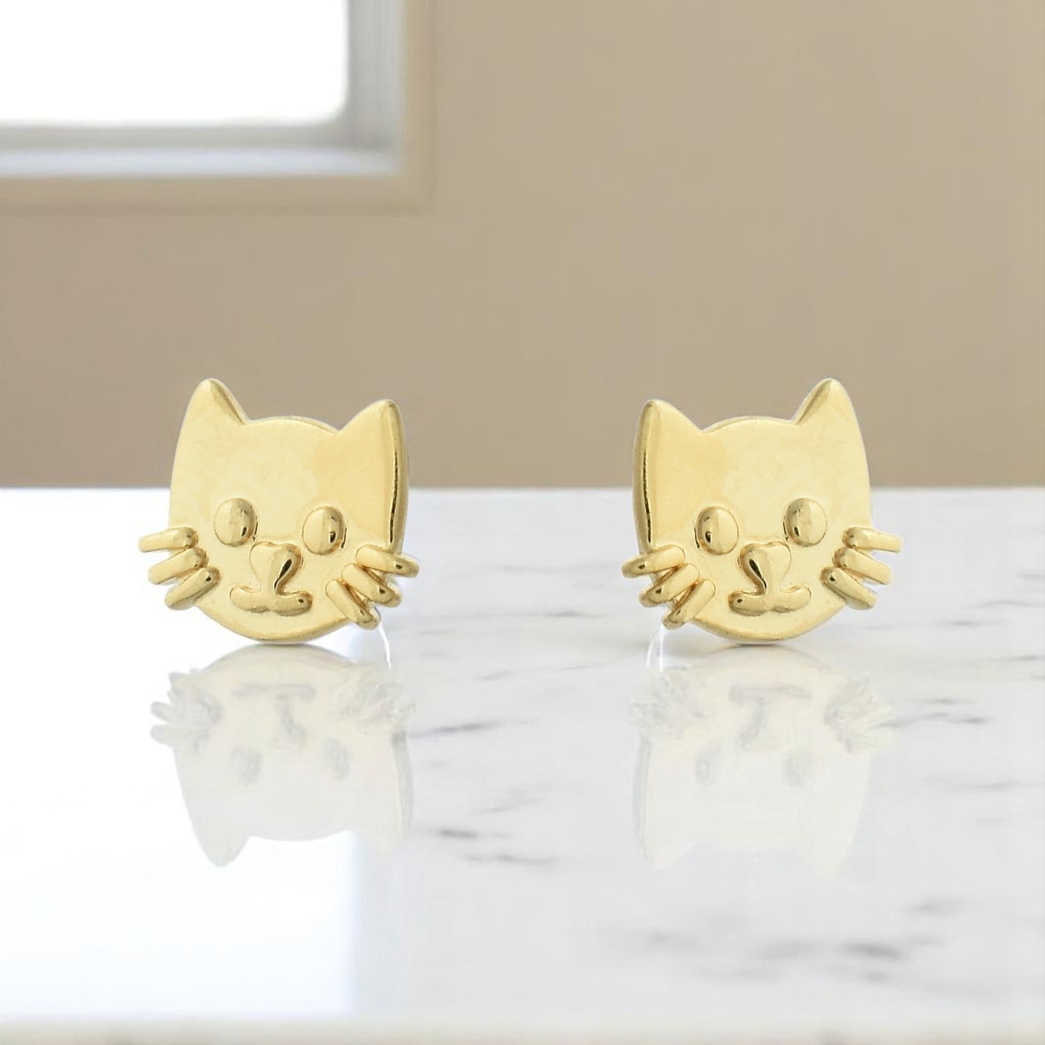 Boucles d’Oreilles Tête Chat Plaqué Or Enfant : La Douceur Féline