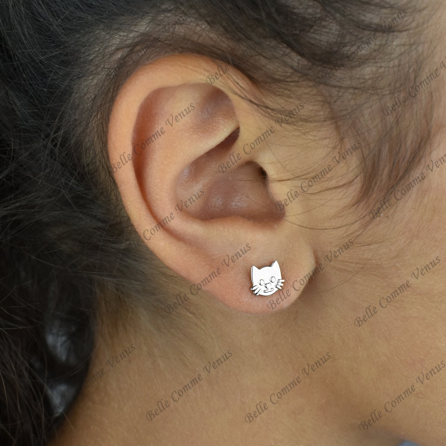 Boucles d’Oreilles Tête Chat Argent Enfant : La Douceur Féline