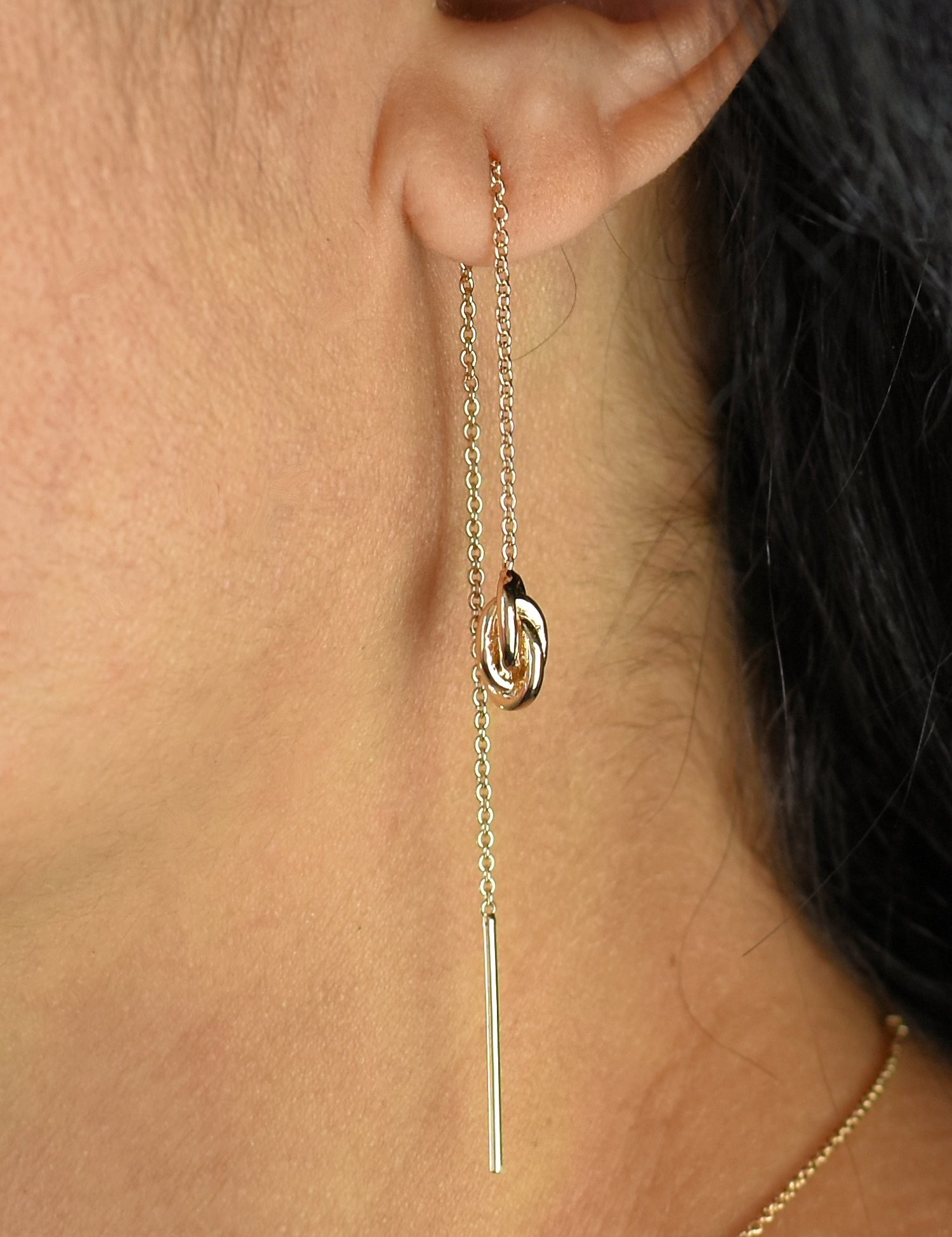 Boucles d’oreilles traversantes noeud chaînette plaqué or : élégance fluide féminine
