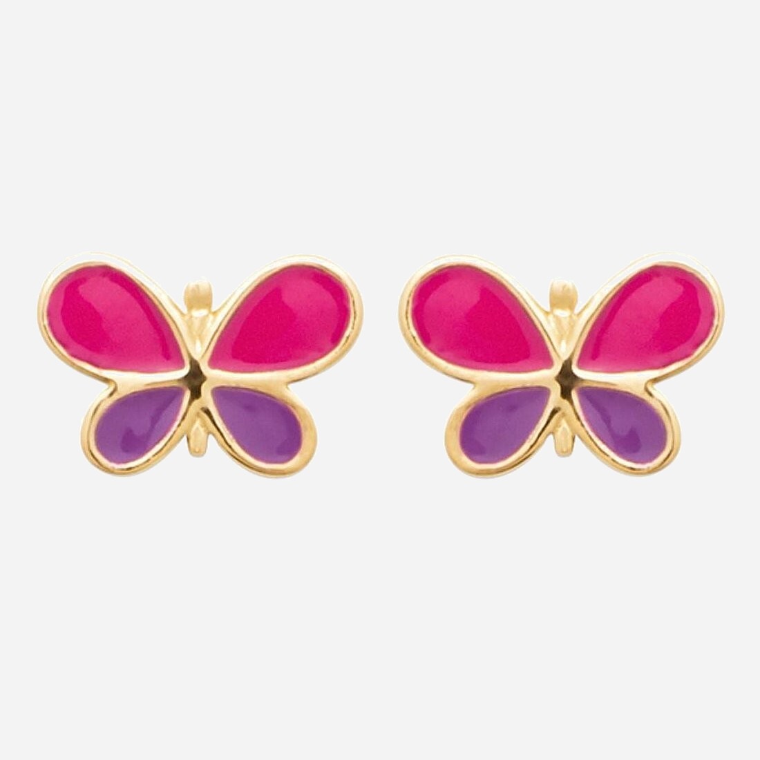 Les boucles d'oreilles enfant papillon émail coloré plaqué OR 750 3 microns sont un bijou délicat qui évoque la légèreté et les couleurs en mouvement.