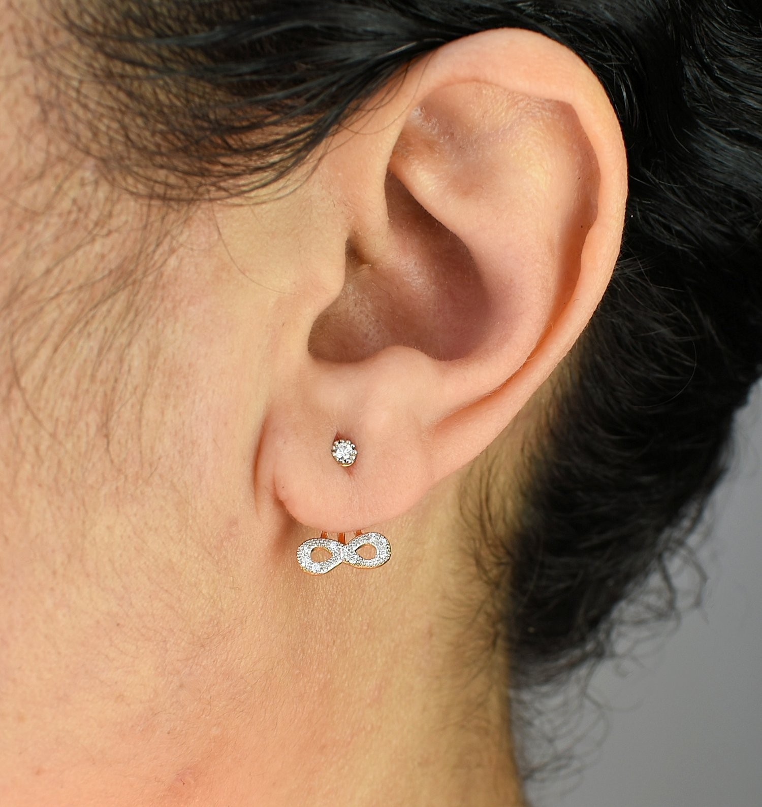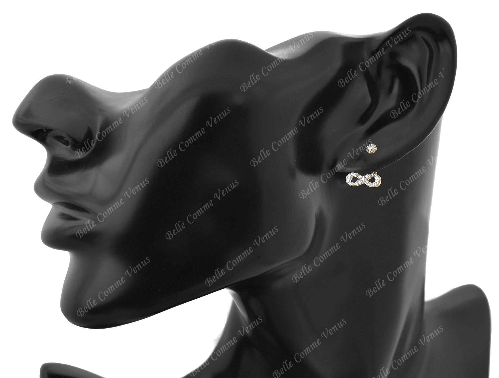Ajoutez une touche d'élégance et de glamour à vos tenues avec nos boucles d'oreilles sous lobes infini serties d'oxyde de zirconium en Plaqué or 750 3 microns 2 tons.