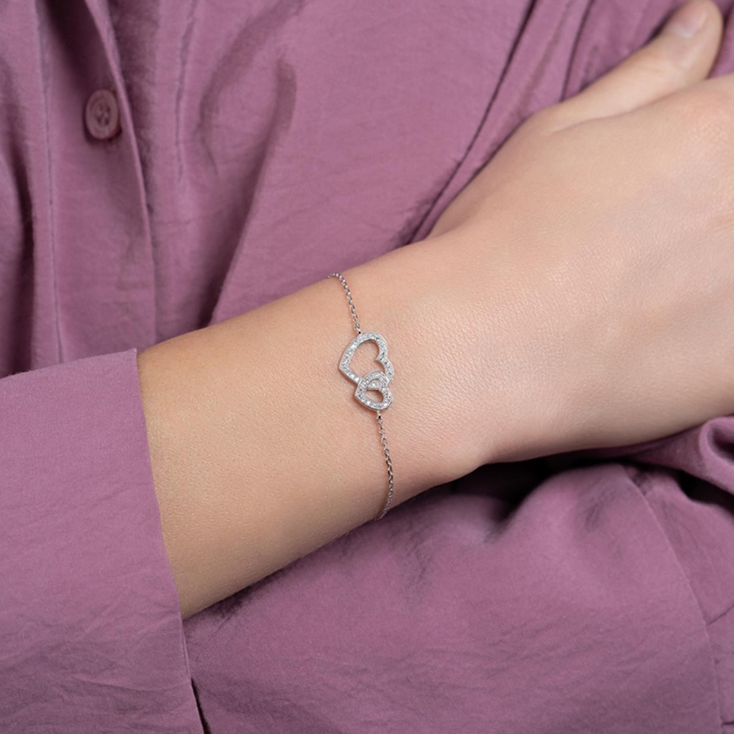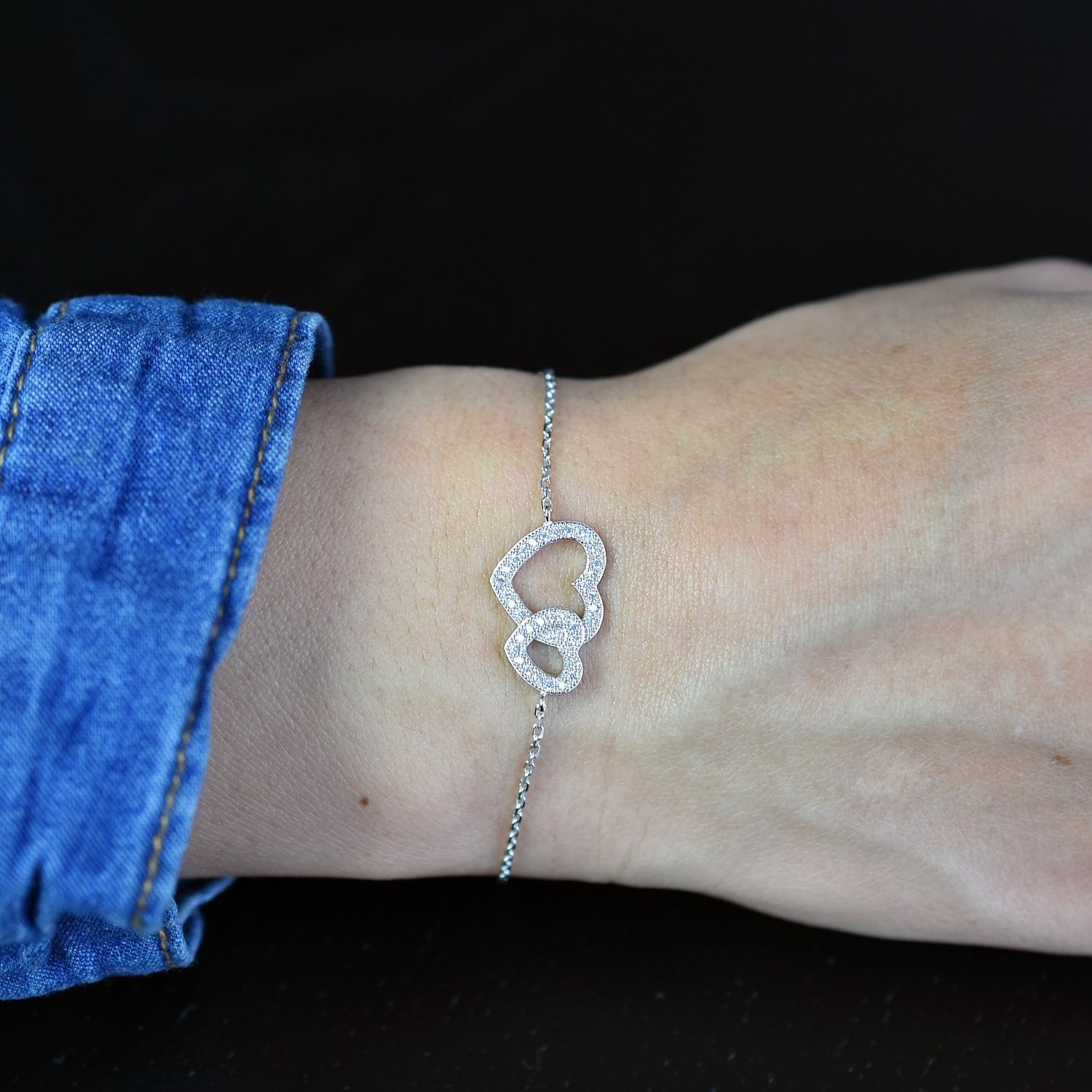 Bracelet 2 coeurs argent 925 oxyde zirconium : double symbole d’amour scintillant