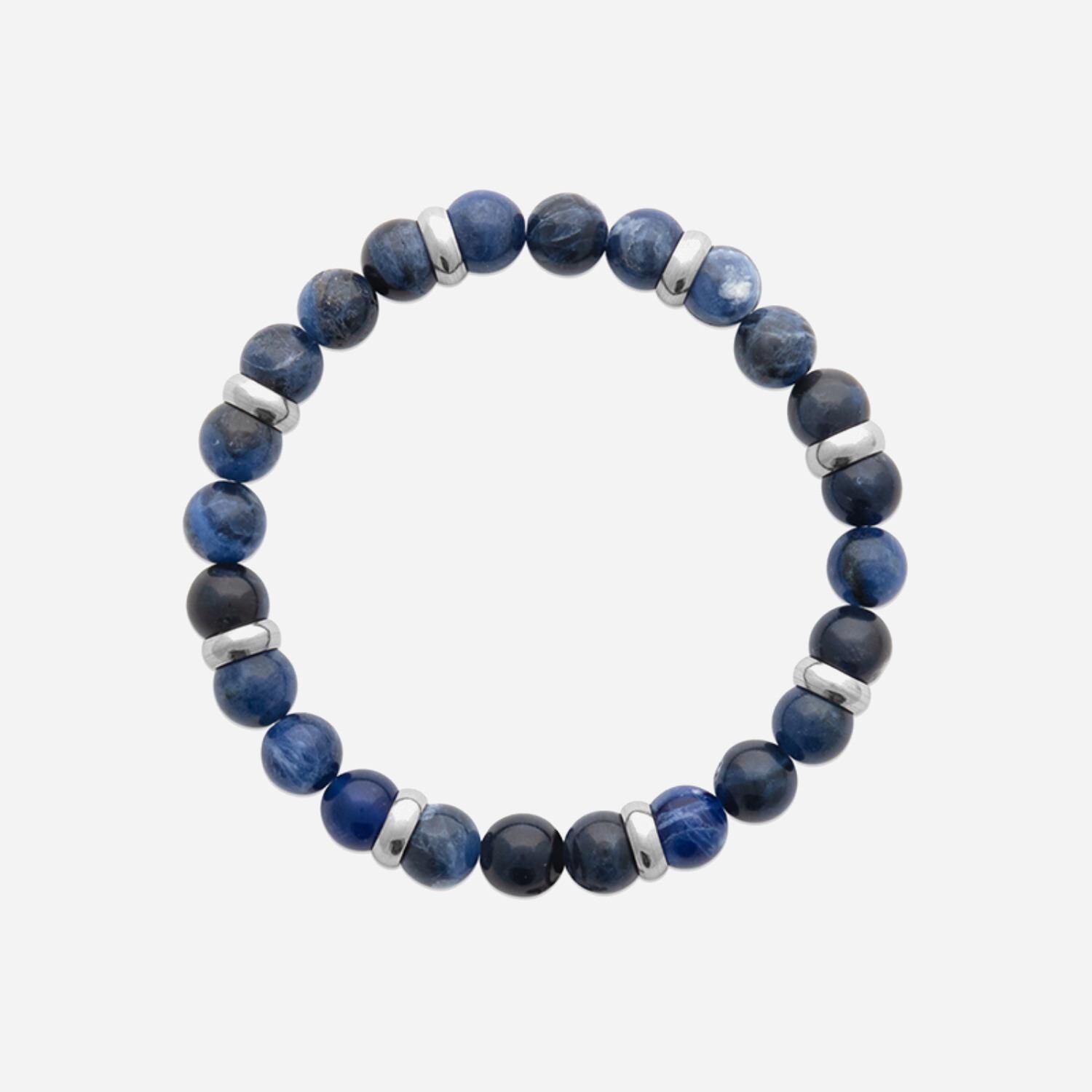 Le jaspe bleu, pierre de sérénité aux reflets azur naturels, apporte douceur et caractère à ce bijou moderne. L’acier assure une robustesse exceptionnelle et une résistance au quotidien. Un bracelet au design contemporain qui allie fraîcheur minérale et sophistication métallique, parfait pour une touche de couleur élégante et apaisante à votre poignet.
