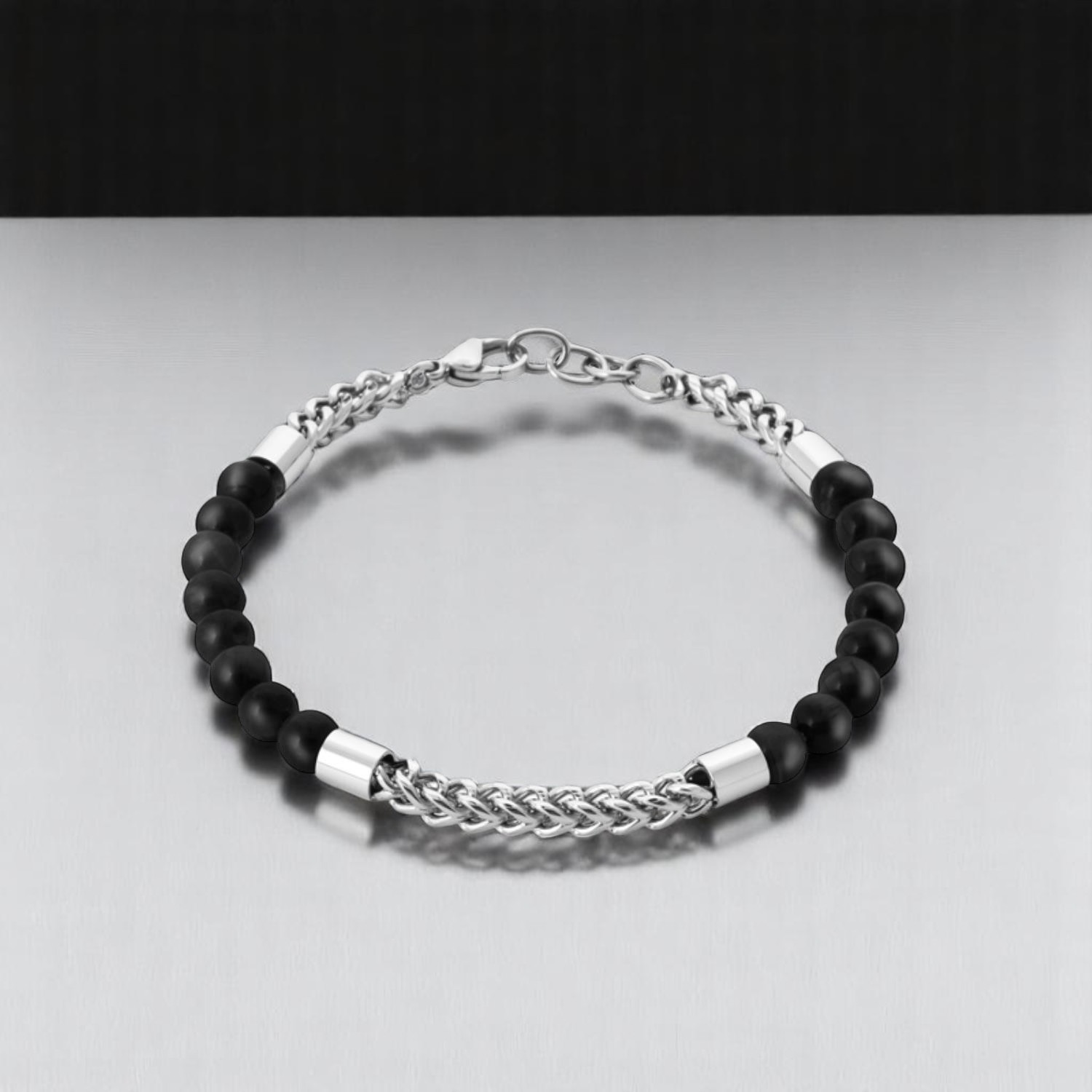 Bracelet Acier Perles Agate Tressé : L’Alliance Minérale Moderne