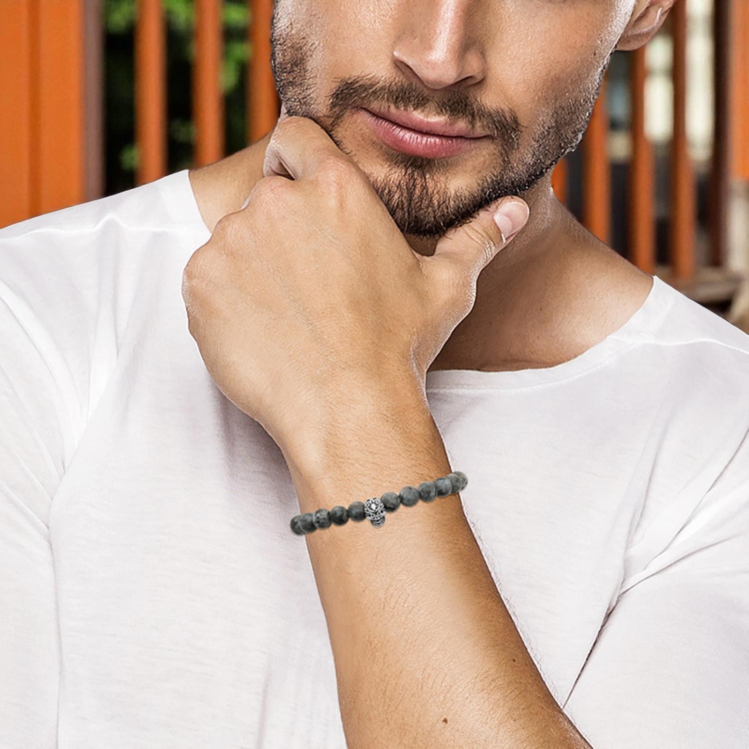 La labradorite, pierre aux reflets irisés uniques, s’associe au symbole tête de mort pour créer un bijou au caractère fascinant et puissant. L’acier assure une robustesse exceptionnelle et une résistance au quotidien. Un bracelet rock qui allie mystère minéral et sophistication métallique, parfait pour affirmer votre style avec audace et magie.