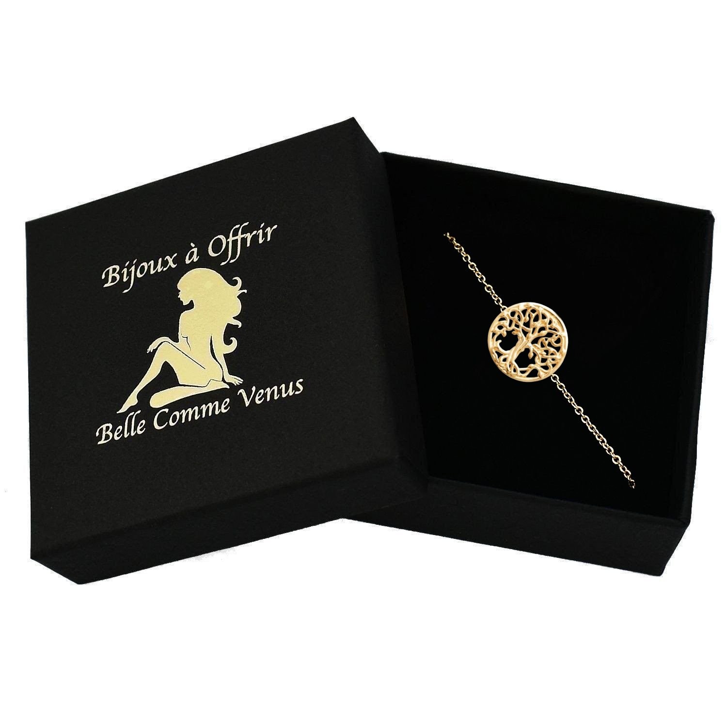 Le bracelet arbre de vie plaqué or 750 célèbre un symbole universel qui se renouvelle. La médaille ronde affiche un motif détaillé d’un arbre feuillu, incarnant une amulette mystique pleine de symbolisme qui apparaît dans de nombreuses légendes à travers le monde.