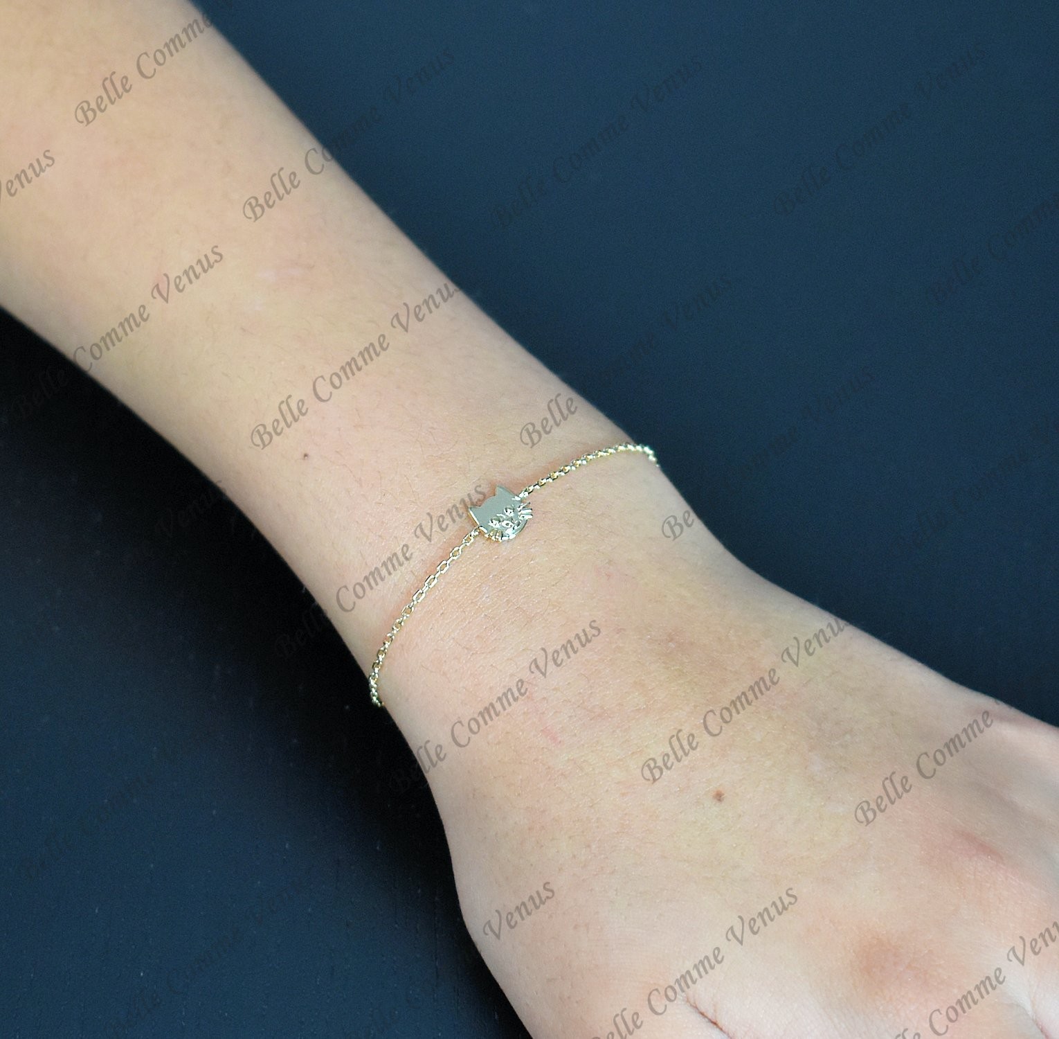 Le bracelet chat plaqué or enfant célèbre l’amour des petites filles pour leurs compagnons félins. Cette tête de chat finement ciselée en plaqué or 750 3 microns capture la tendresse et l’espièglerie dans un design adorable et délicat.