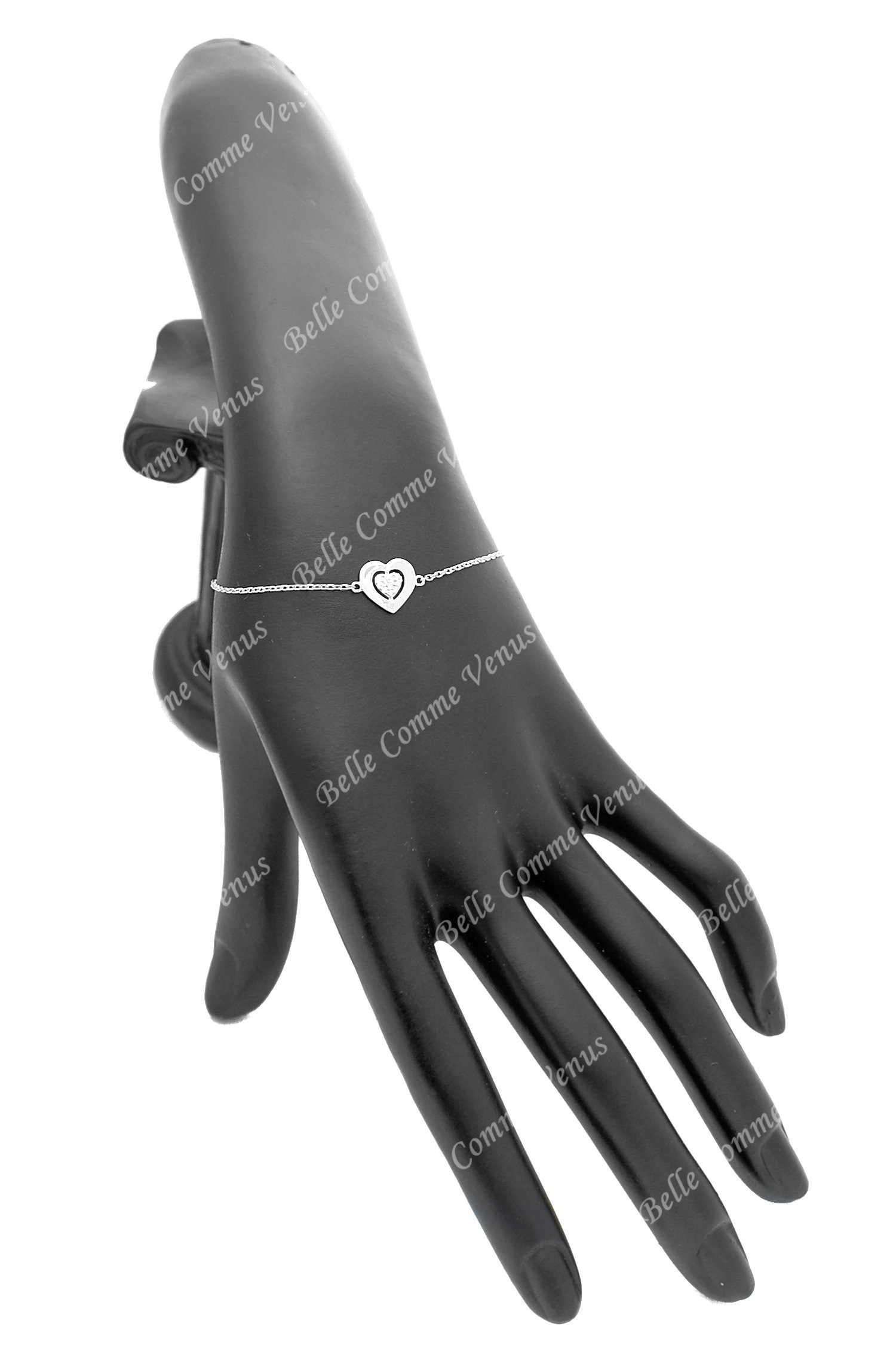 Apportez une touche romantique et élégante à votre poignet avec notre bracelet coeur ajouré d'un autre coeur serti d'oxyde de zirconium en Argent 925 Rhodié.