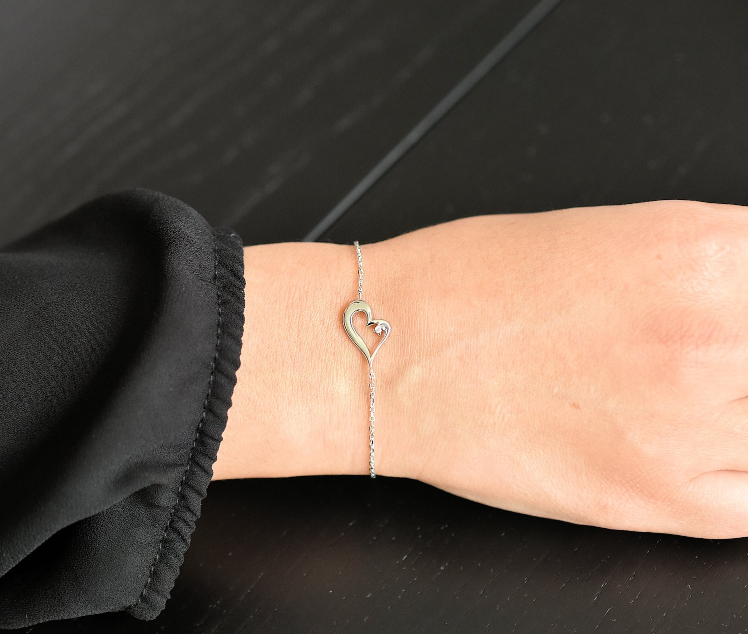 Bracelet Cœur Argent 925 Zirconium : L’Amour Scintillant
