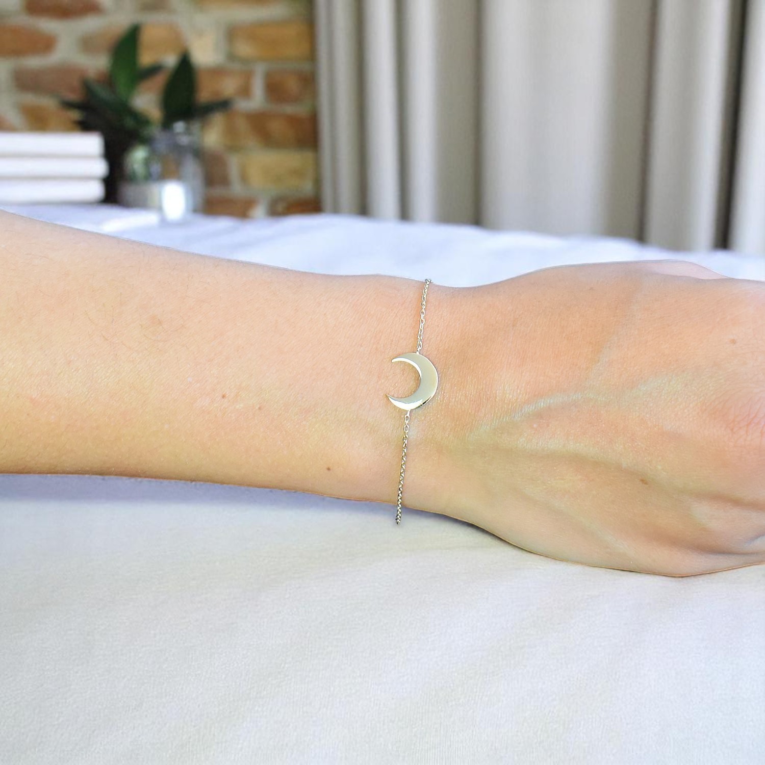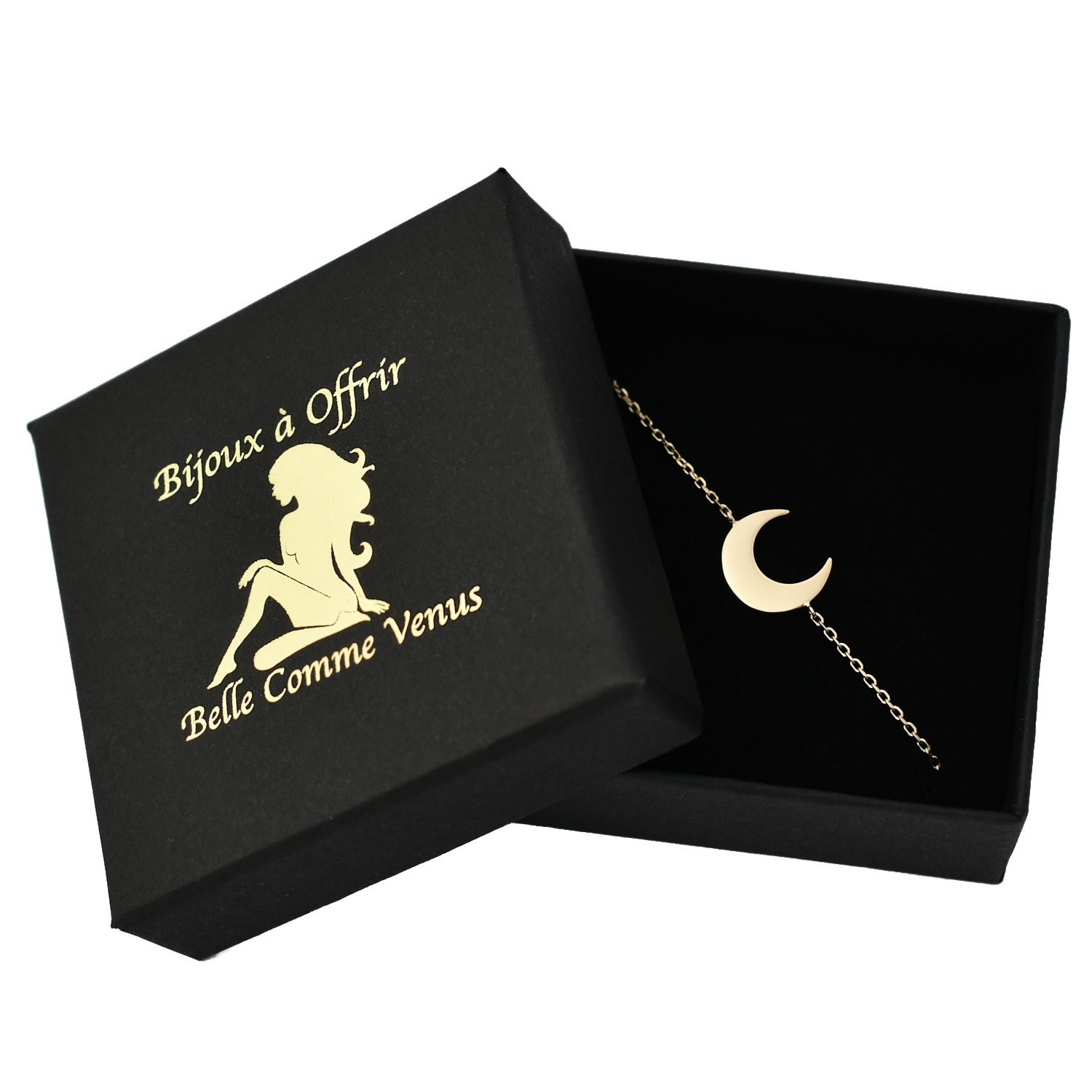 Le croissant de lune symbolise féminité et mystère, sublimé par le plaqué OR 750 3 microns qui garantit brillance dorée luxueuse durable. Un bracelet qui affirme finesse lunaire avec raffinement doré et finition joaillière précieuse pour un style céleste élégant au quotidien.