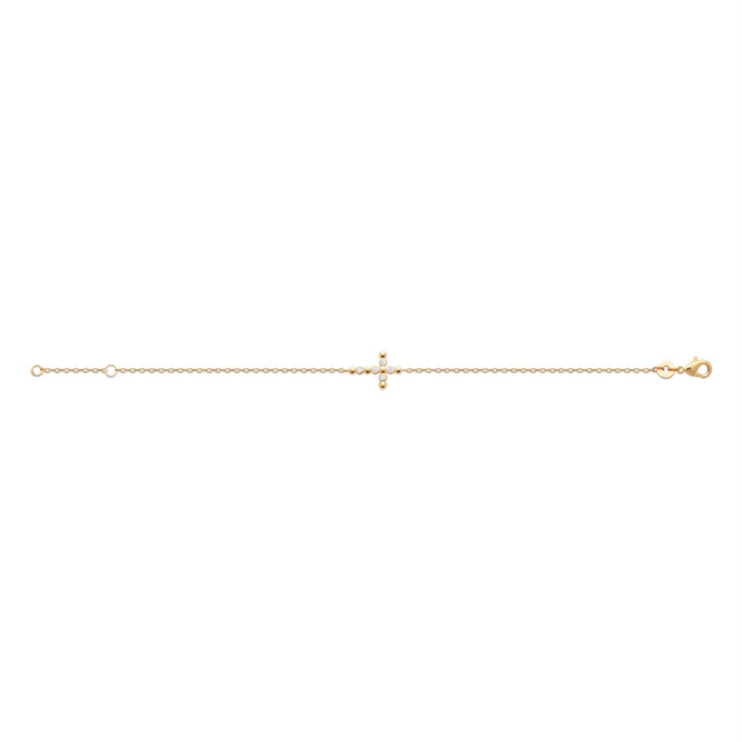 Découvrez notre bracelet croix en plaqué OR 750 de 3 microns, orné d'oxydes de zirconium scintillants.