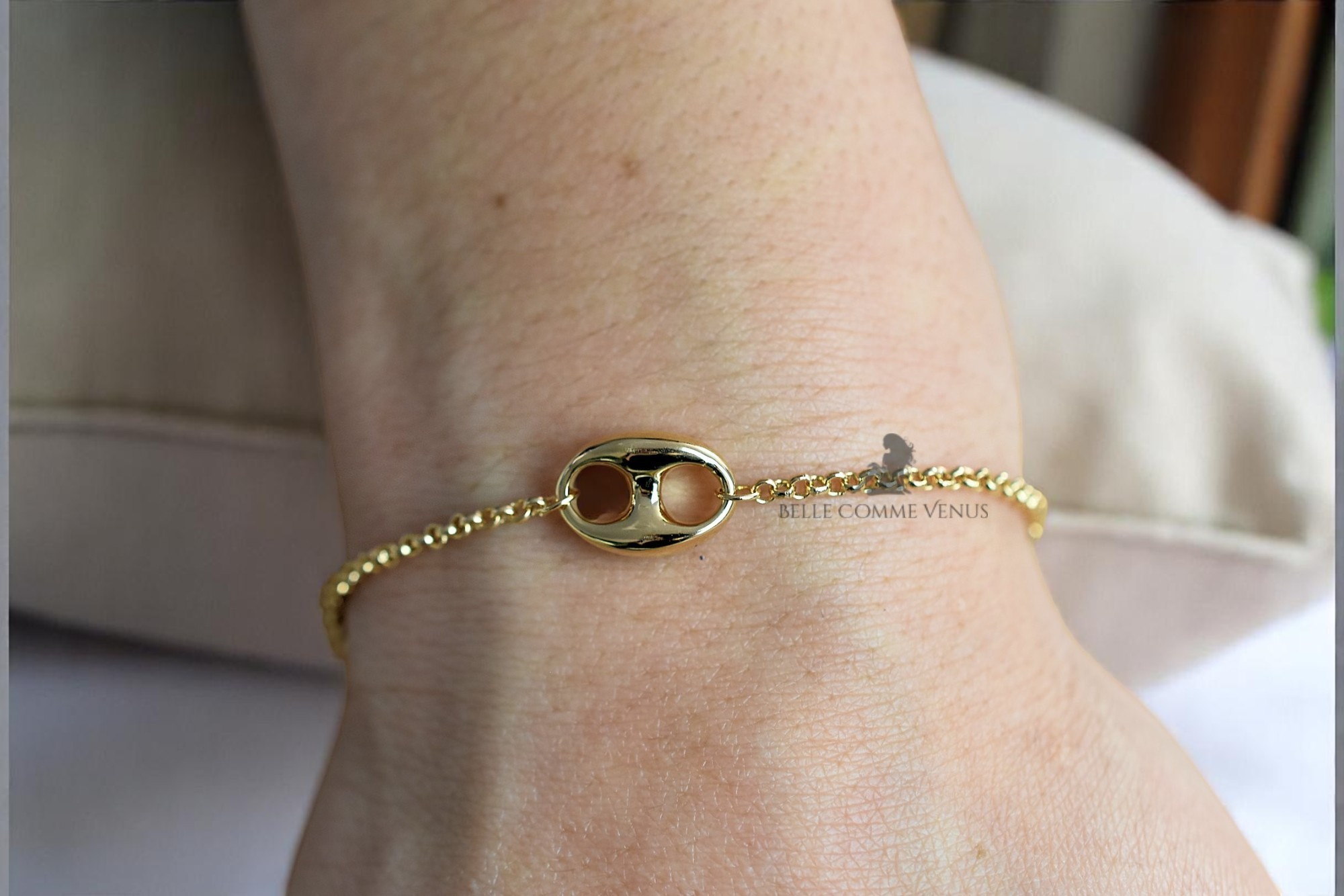 Bracelet grain café maille jaseron plaqué or : élégance texturée raffinée