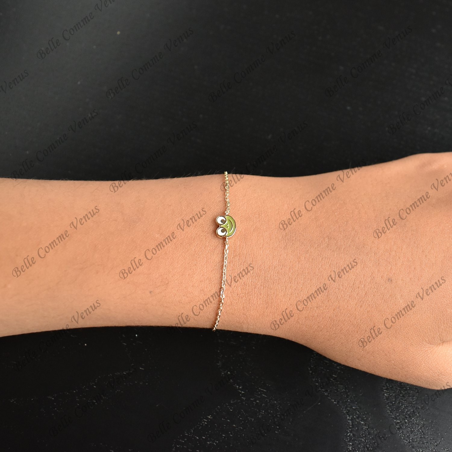 Le bracelet grenouille enfant plaqué or 750 allie charme ludique et éclat coloré avec fantaisie. Ce bracelet grenouille orné d’émail coloré célèbre l’univers naturel au poignet de votre enfant avec délicatesse et raffinement lumineux.