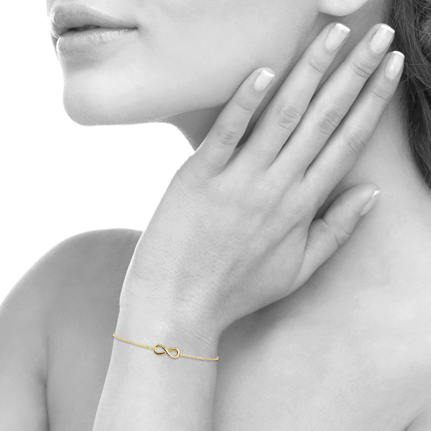 Le symbole infini s’enroule délicatement autour de votre poignet. Ce bracelet infini plaqué or représente l’éternité et l’amour pour toujours : un bijou intemporel qui célèbre les liens qui durent. Le symbole infini est également symbole de sagesse, de réflexion, d’harmonie et d’amitié.