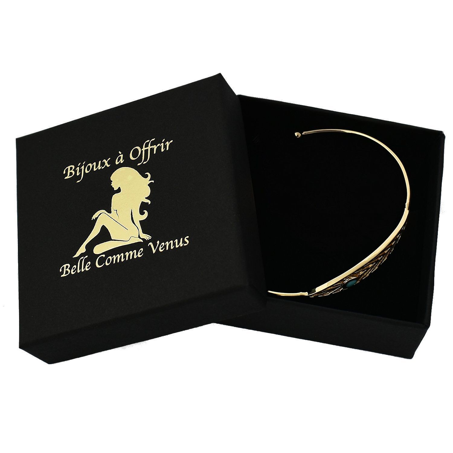 Le bracelet jonc plaqué or 750 3 microns avec plume et perle bleu turquoise célèbre la liberté et la légèreté spirituelle dans un design bohème raffiné. La plume, symbole universel de liberté, légèreté et spiritualité, apporte une touche poétique à ce bijou élégant.