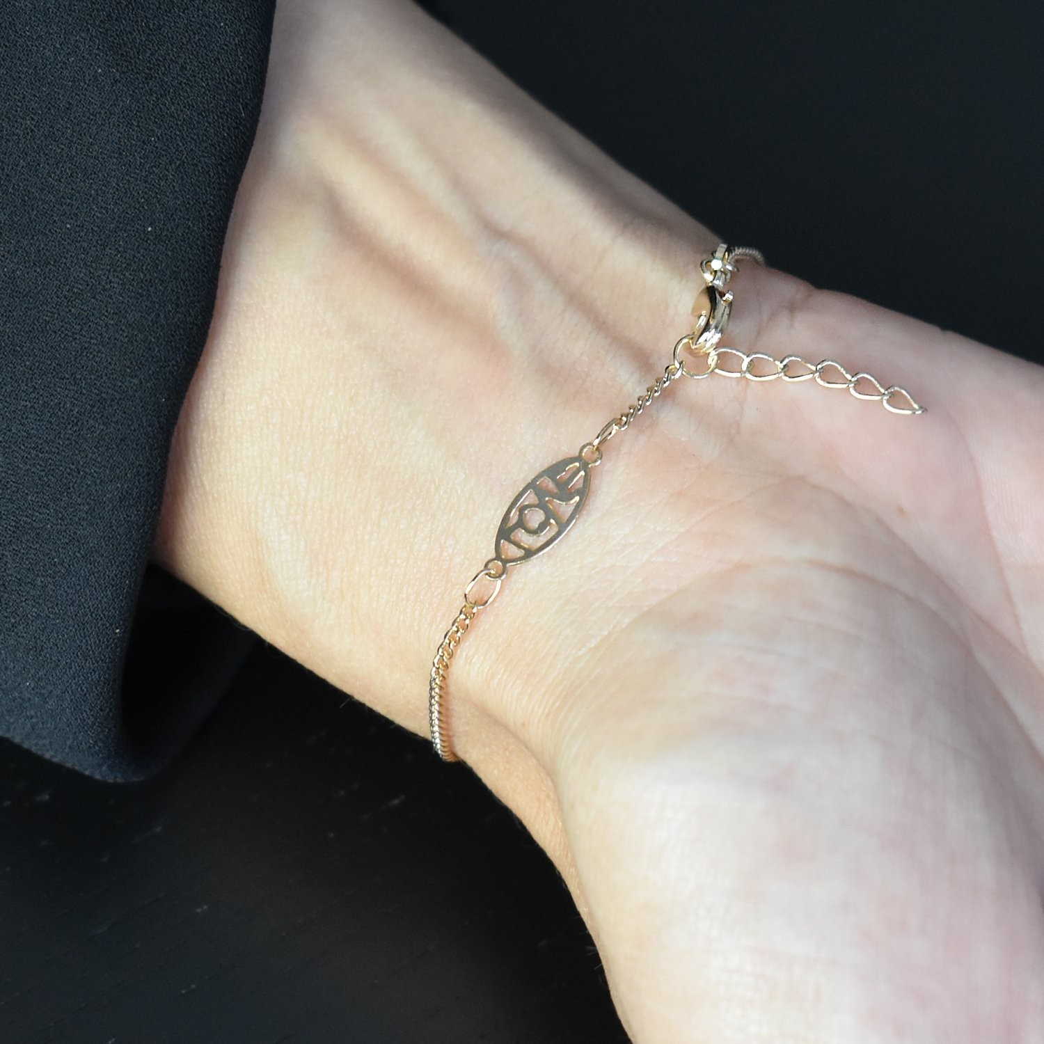 L’écriture love délicatement gravée évoque l’amour universel, les sentiments sincères et les connexions profondes. Le plaqué or 3 microns garantit un éclat doré durable à ce bijou qui porte un message fort au poignet.