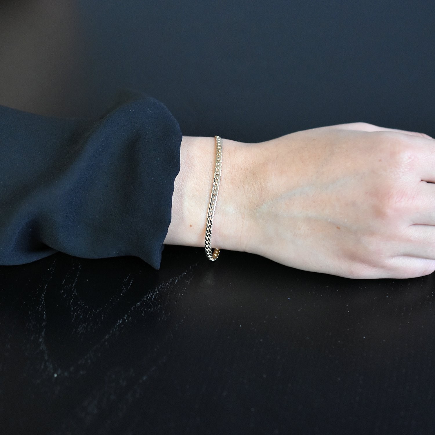 La maille anglaise déploie sa finesse raffinée. Ce bracelet maille anglaise plaqué or fin incarne l’élégance intemporelle : un classique qui traverse les modes sans vieillir, pour un poignet délicat et sophistiqué.