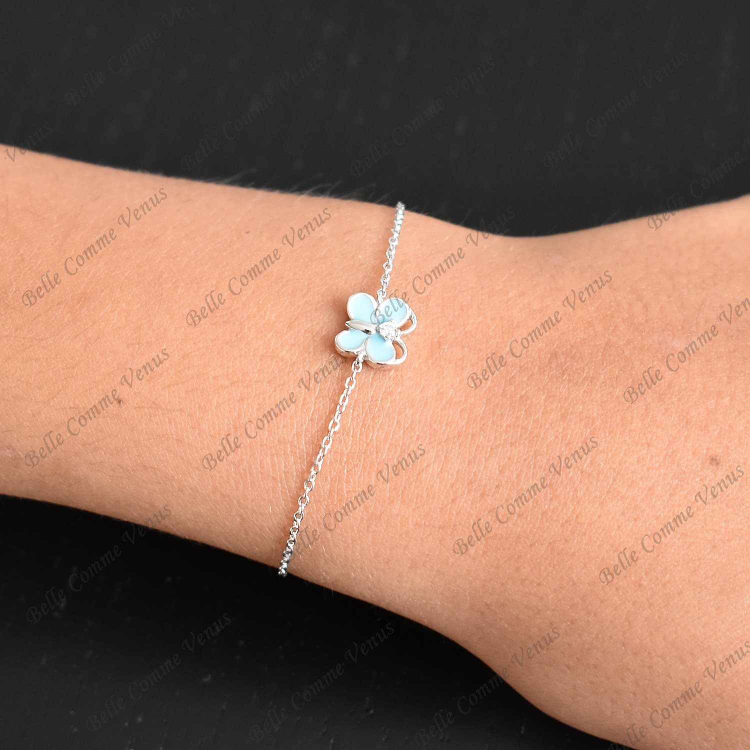 Le bracelet papillon bleu argent enfant célèbre la transformation et la magie avec brillance. Ce bracelet papillon avec émail bleu turquoise et oxyde de zirconium en argent 925 rhodié capture la grâce et la délicatesse dans un design scintillant coloré et raffiné.