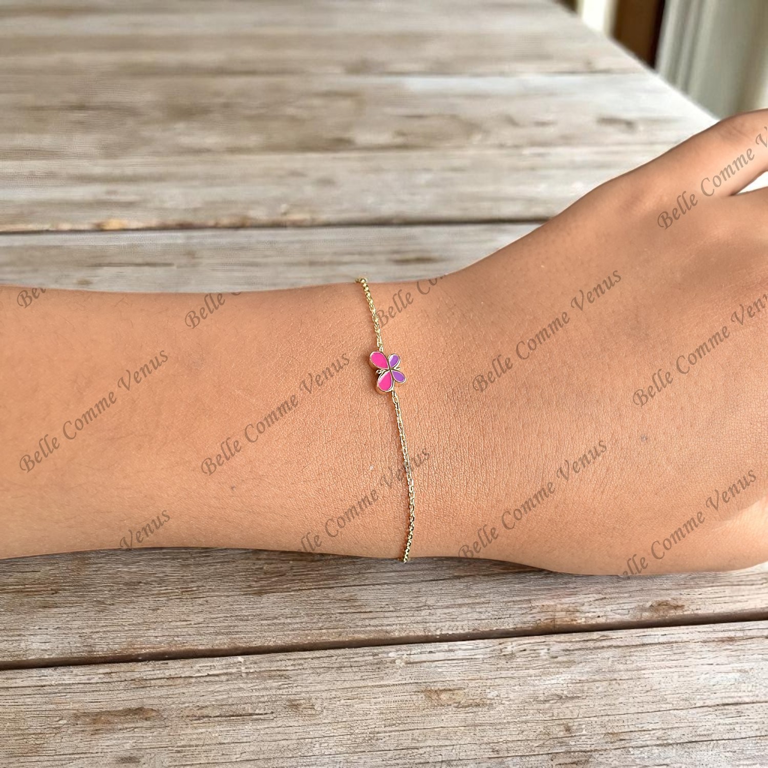 Bracelet papillon enfant plaqué or : légèreté et couleurs en mouvement