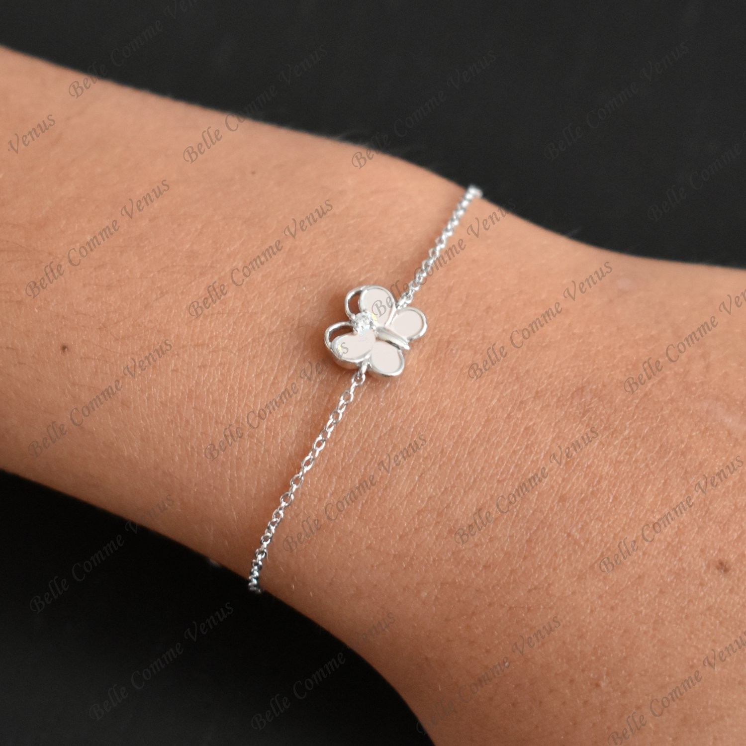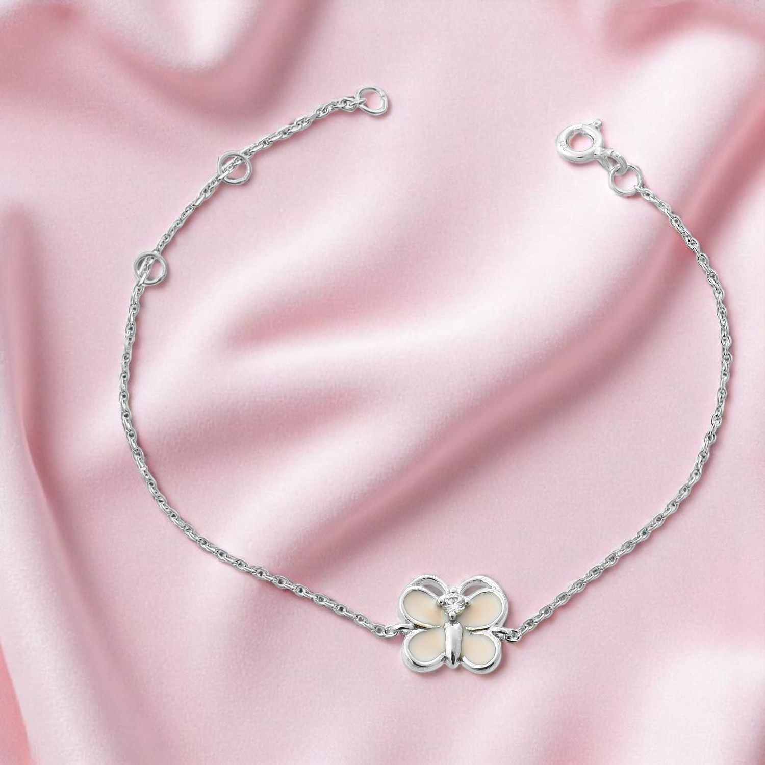 Bracelet Papillon Rose Argent Enfant : La Légèreté Féminine Scintillante