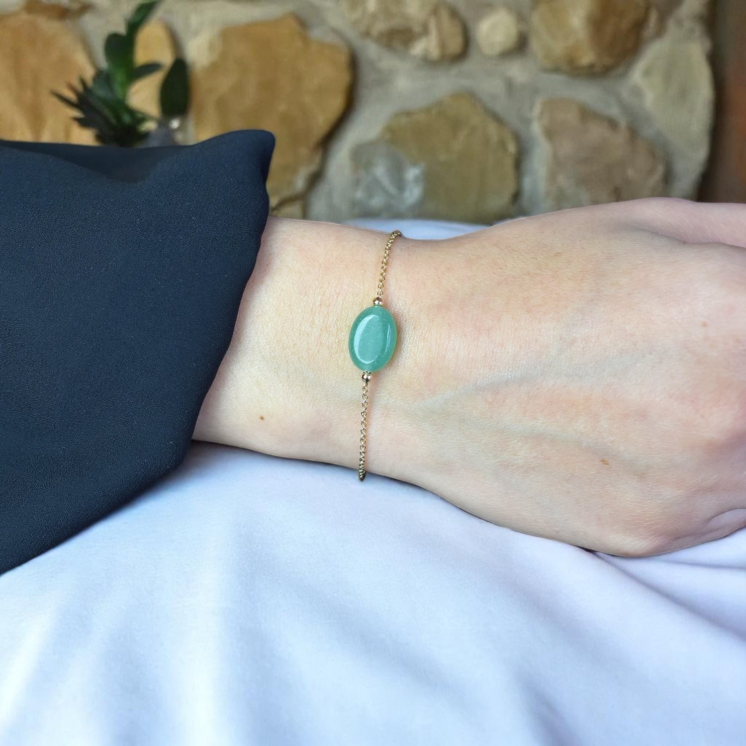 Bracelet Plaqué Or Aventurine Verte : L’Éclat Naturel