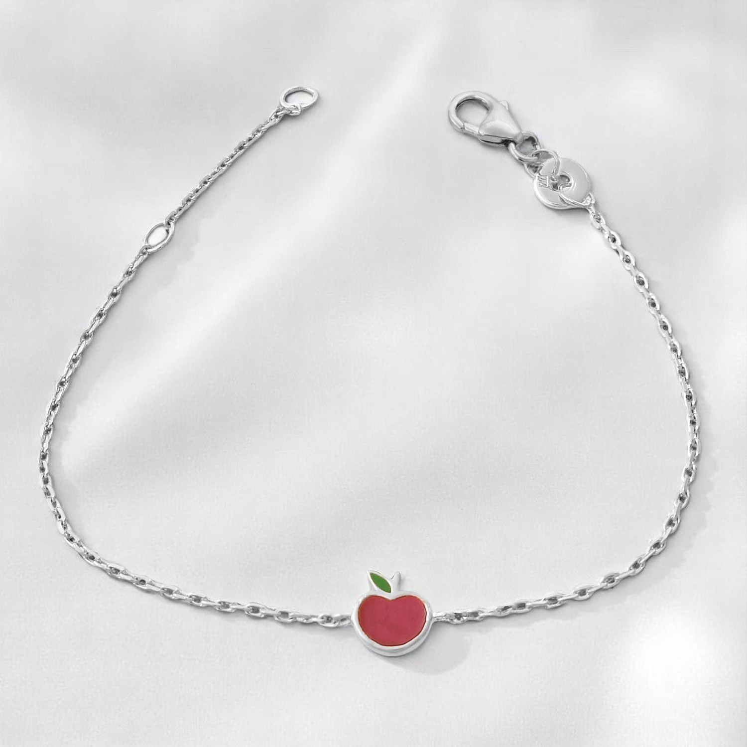 La pomme émail rouge vert crée un bijou tendre et joyeux, symbole de gourmandise saine et de vitalité parfait pour l’univers enfantin. L’argent 925 rhodié garantit qualité hypoallergénique, brillance durable et sécurité adaptées aux petits poignets. Un bracelet pomme charmant qui accompagne les enfants avec gaieté, fraîcheur et délicatesse croquante au quotidien.