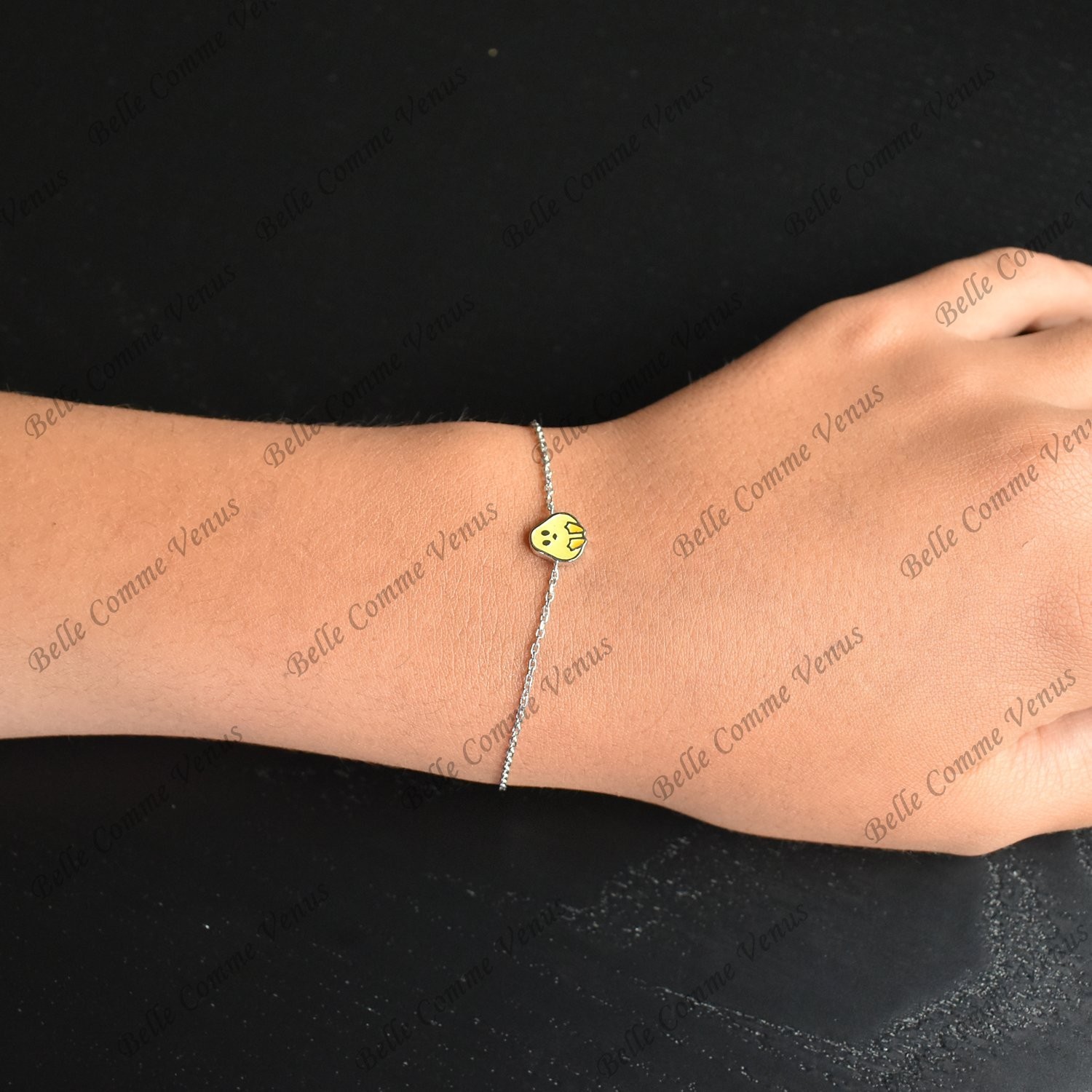Bracelet poussin argent 925 émail coloré enfant : joie et couleurs au poignet