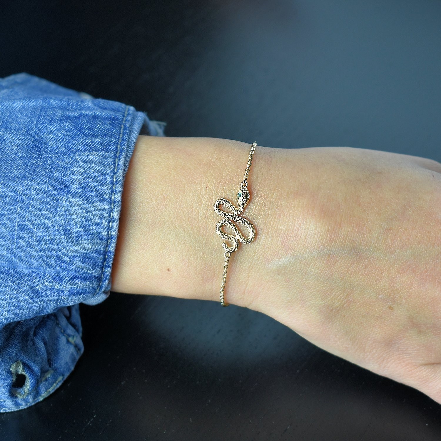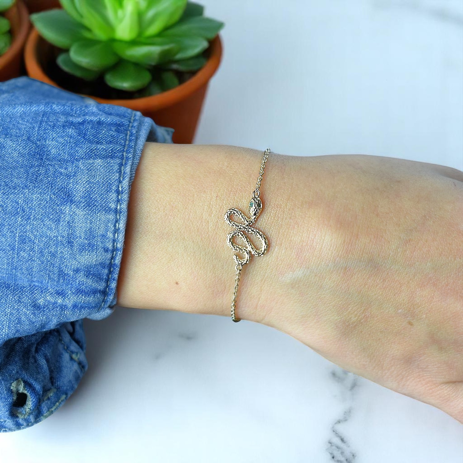 Bracelet serpent plaqué or oxyde zirconium vert yeux : beauté animale mystérieuse