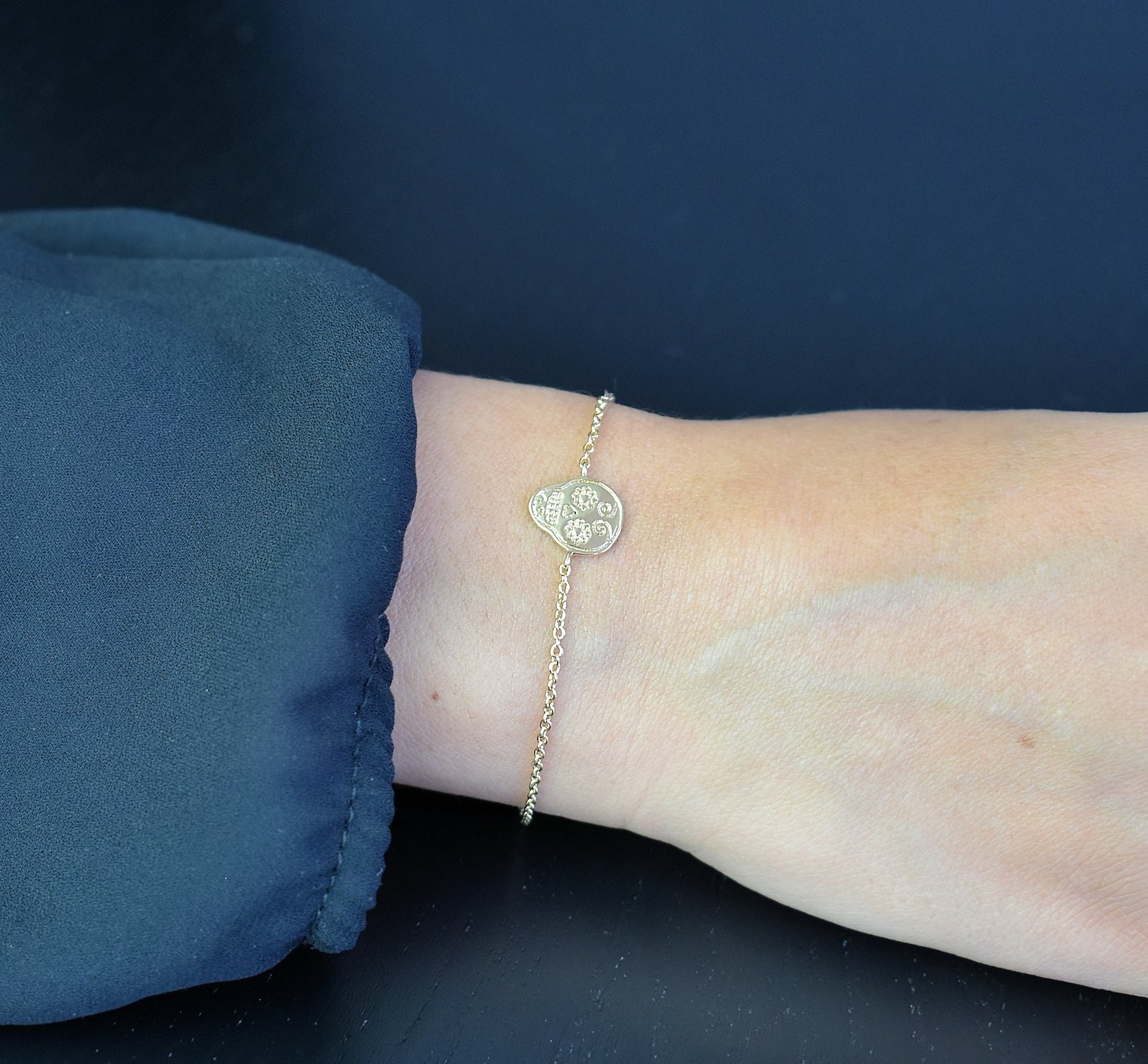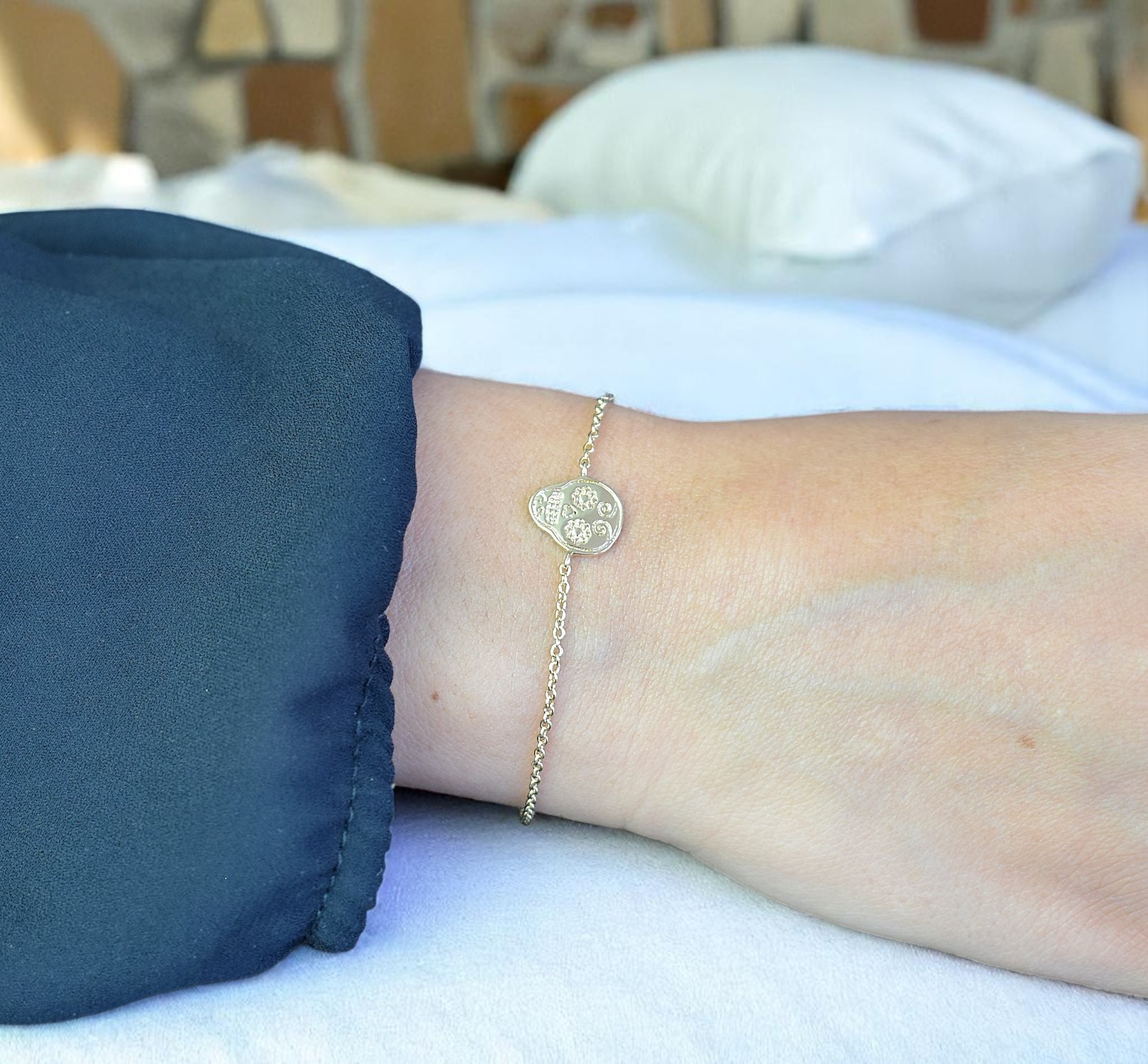 Ce bracelet tête de mort plaqué or 3 microns capture l’essence de la calavera mexicaine avec ses motifs floraux délicats. Le plaqué or 750 3 microns offre une brillance intense et une résistance optimale.