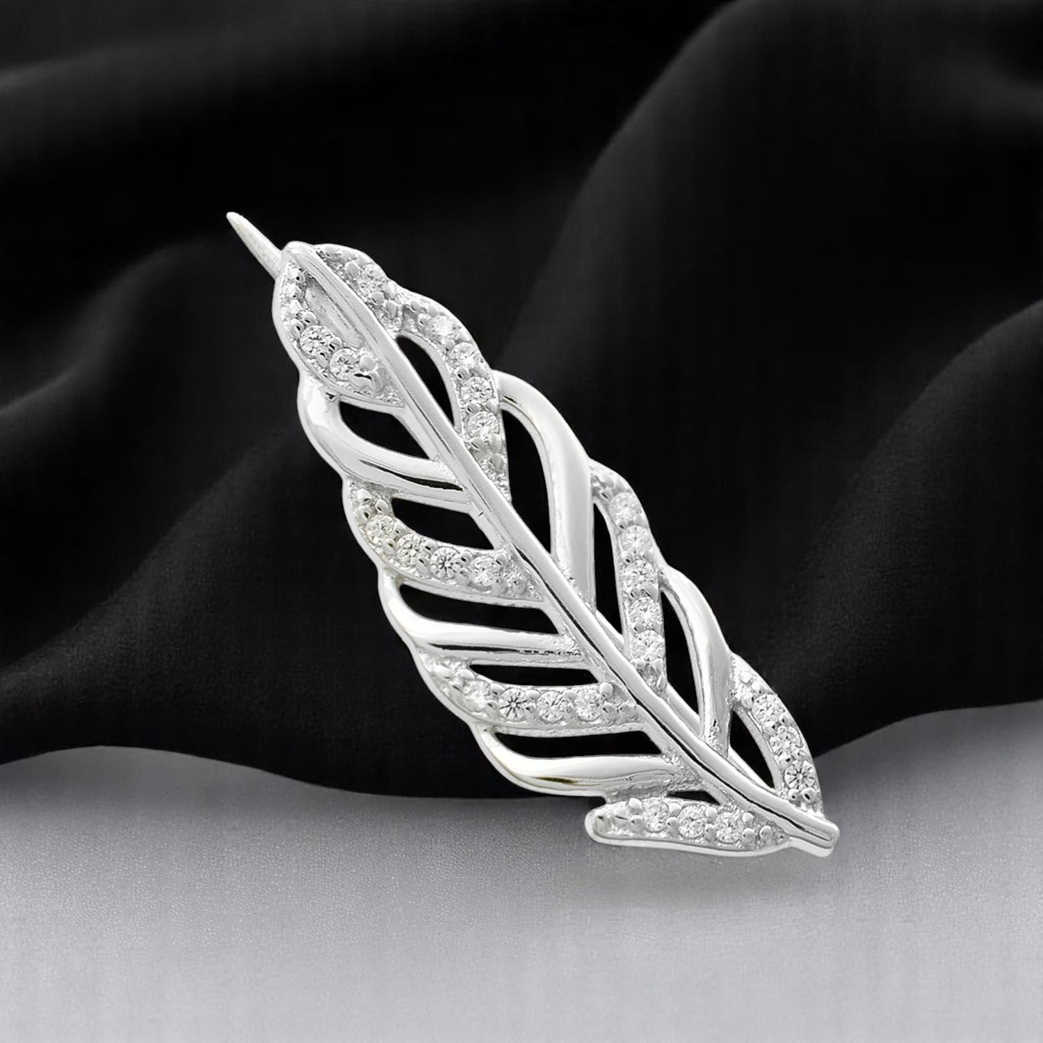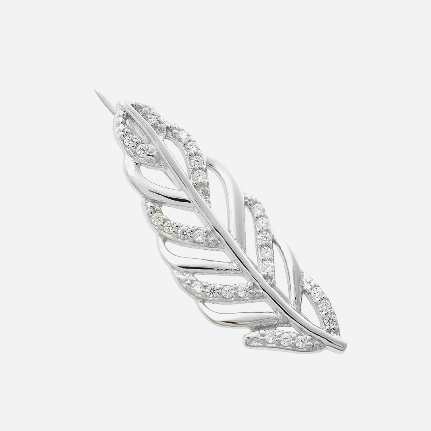 Une broche feuille zirconium argent 925 d’une élégance botanique