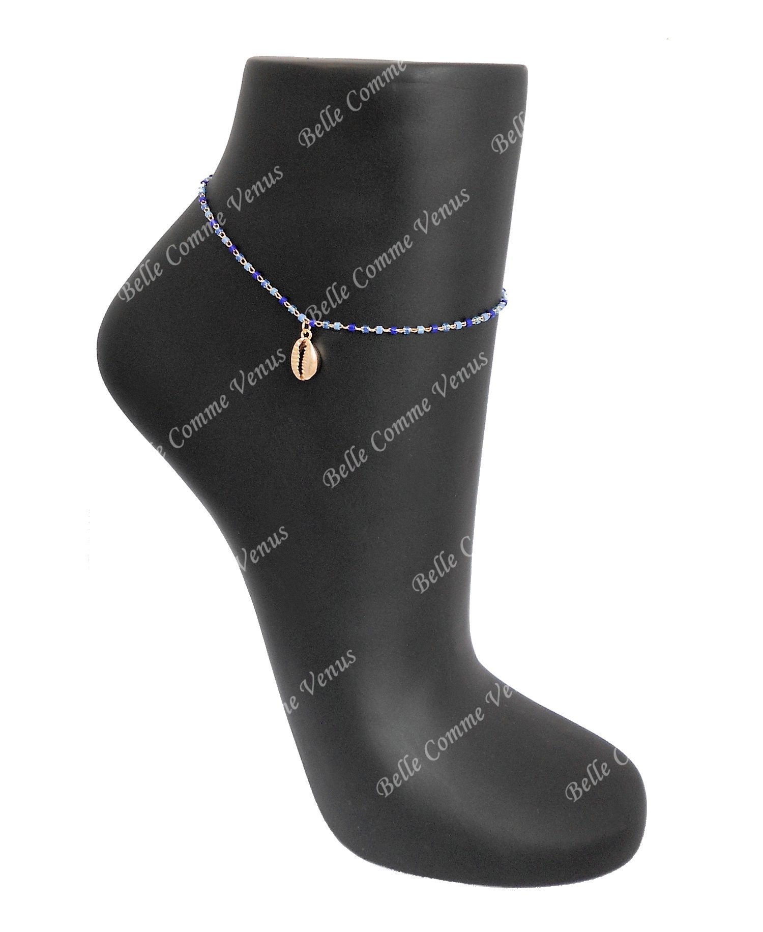 CHAÎNE CHEVILLE CAURI BLEU PLAQUÉ OR