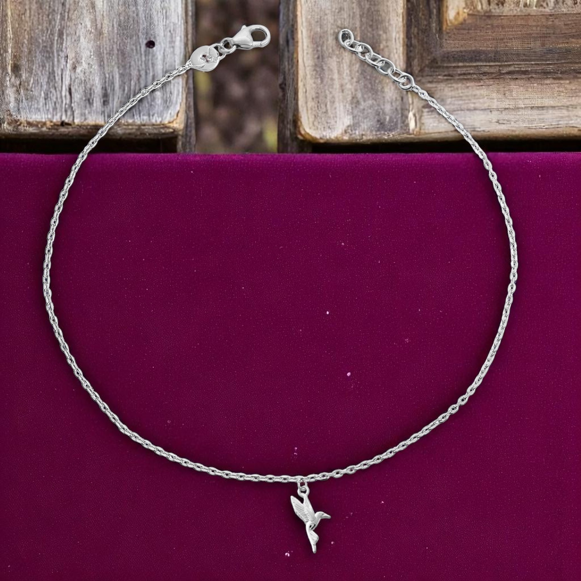 Une chaîne de cheville colibri argent 925 qui célèbre la légèreté