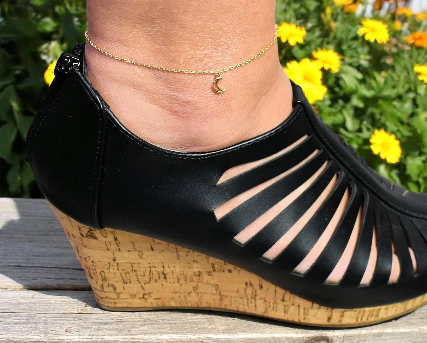 Chaîne cheville croissant lune plaqué or ajouré : magie céleste aux chevilles