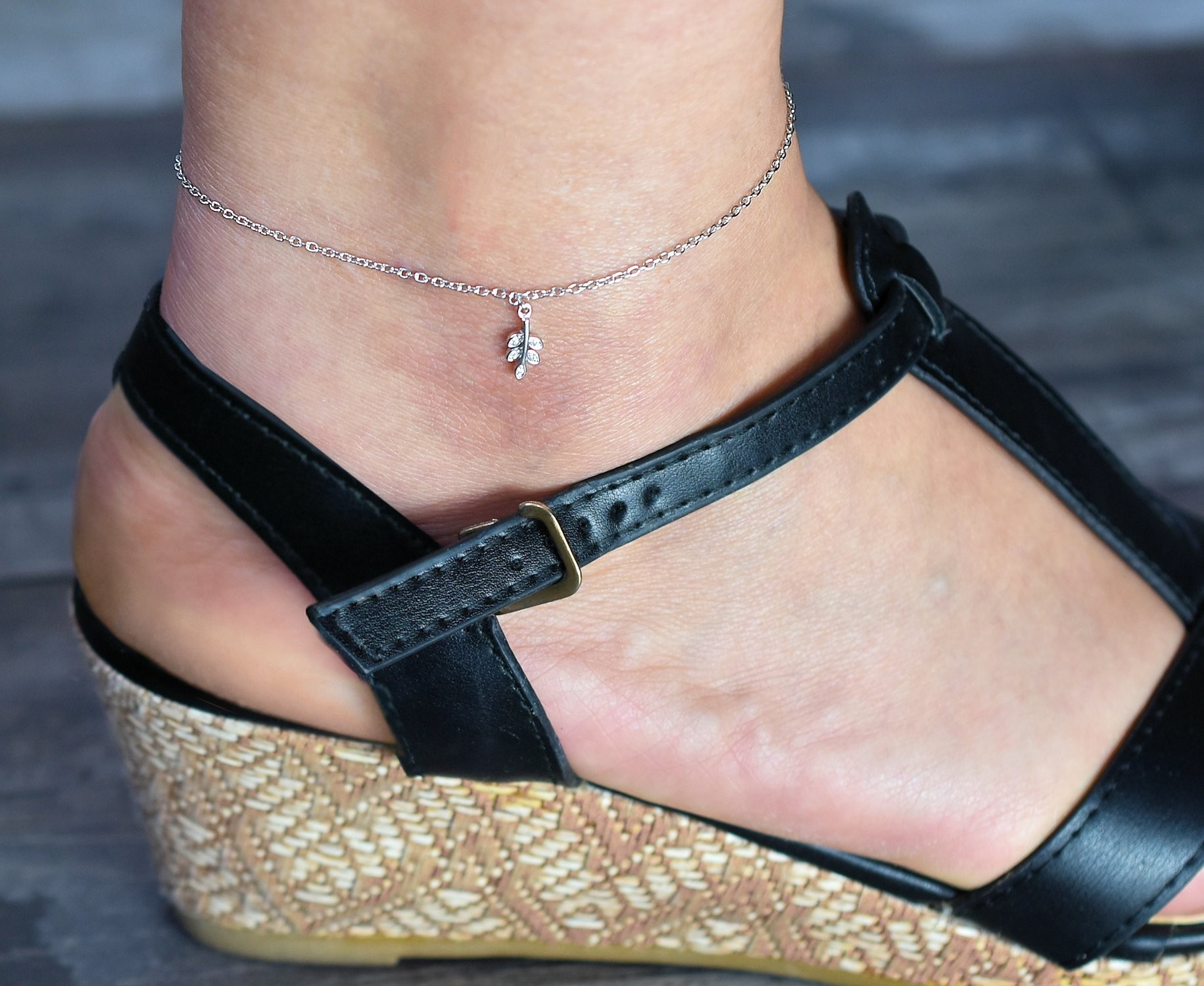 La Chaîne Cheville Feuille Argent Rhodié : Nature Précieuse