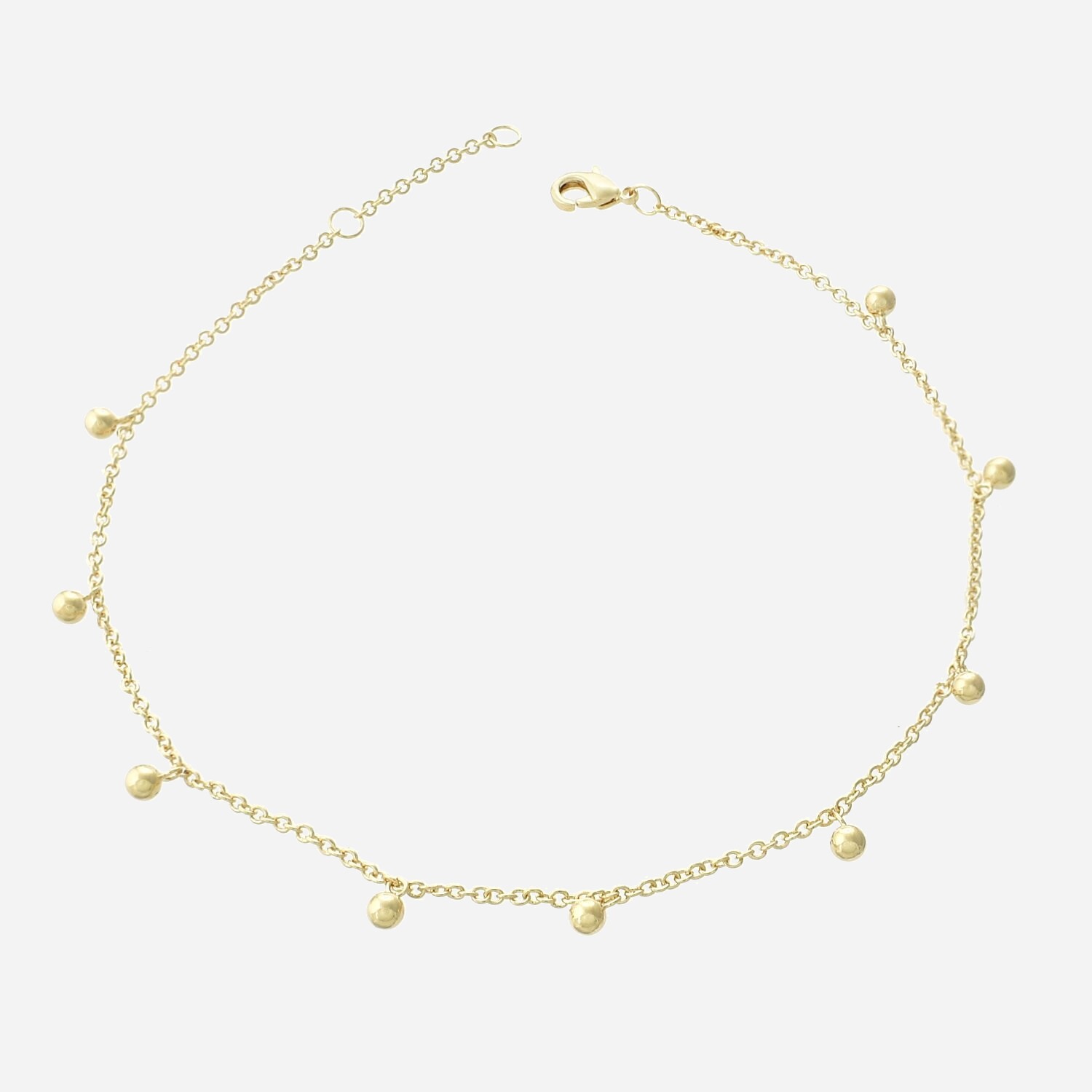 Une chaîne de cheville pampilles boules plaqué or qui danse à chaque pas