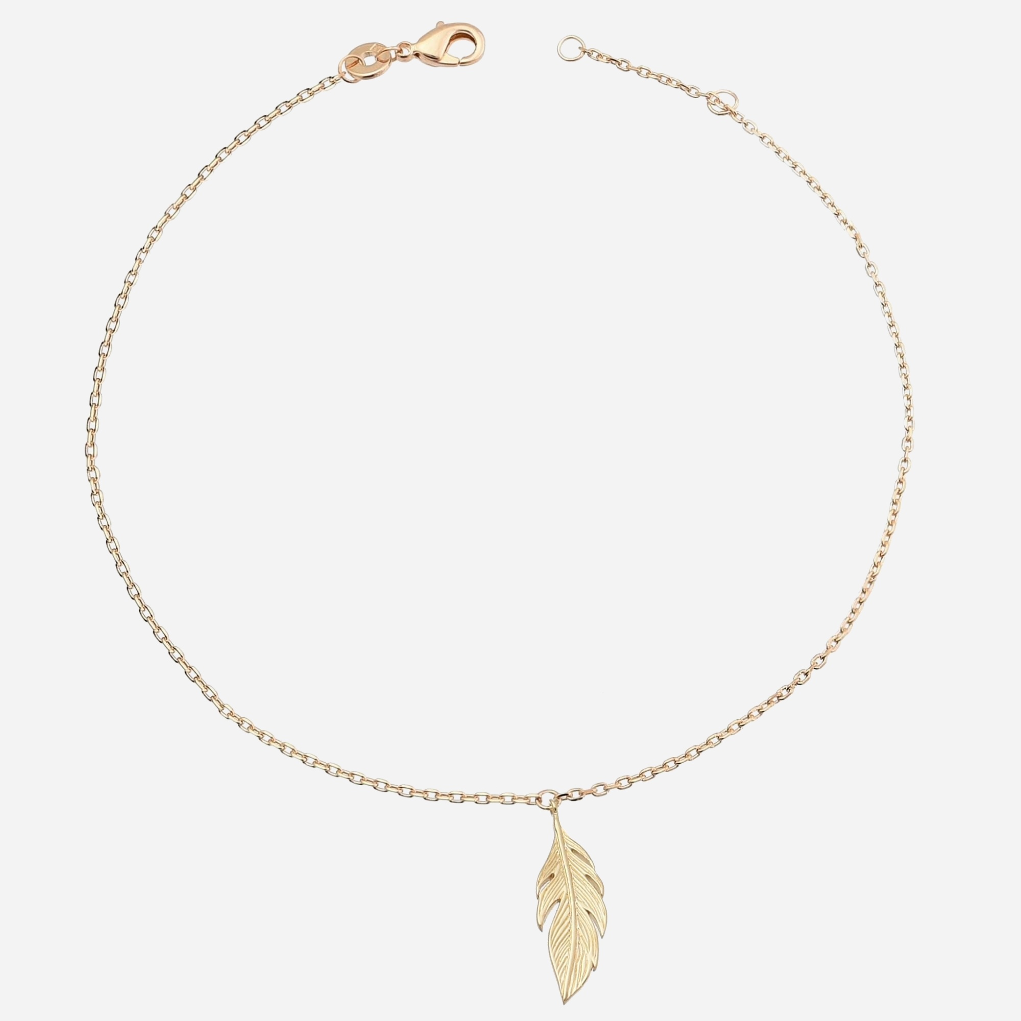 Chaîne cheville plaqué or plume pendante : légèreté et liberté aérienne