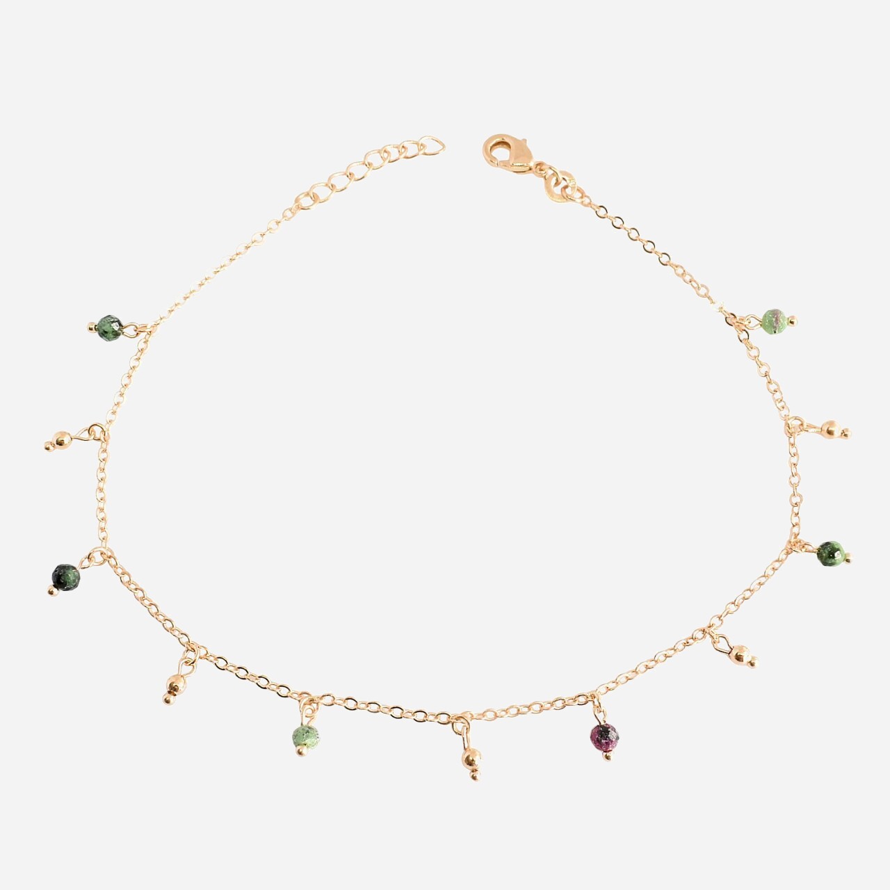 Chaîne Cheville Plaqué Or Rubis Zoïsite : Le Contraste Minéral à Votre Cheville