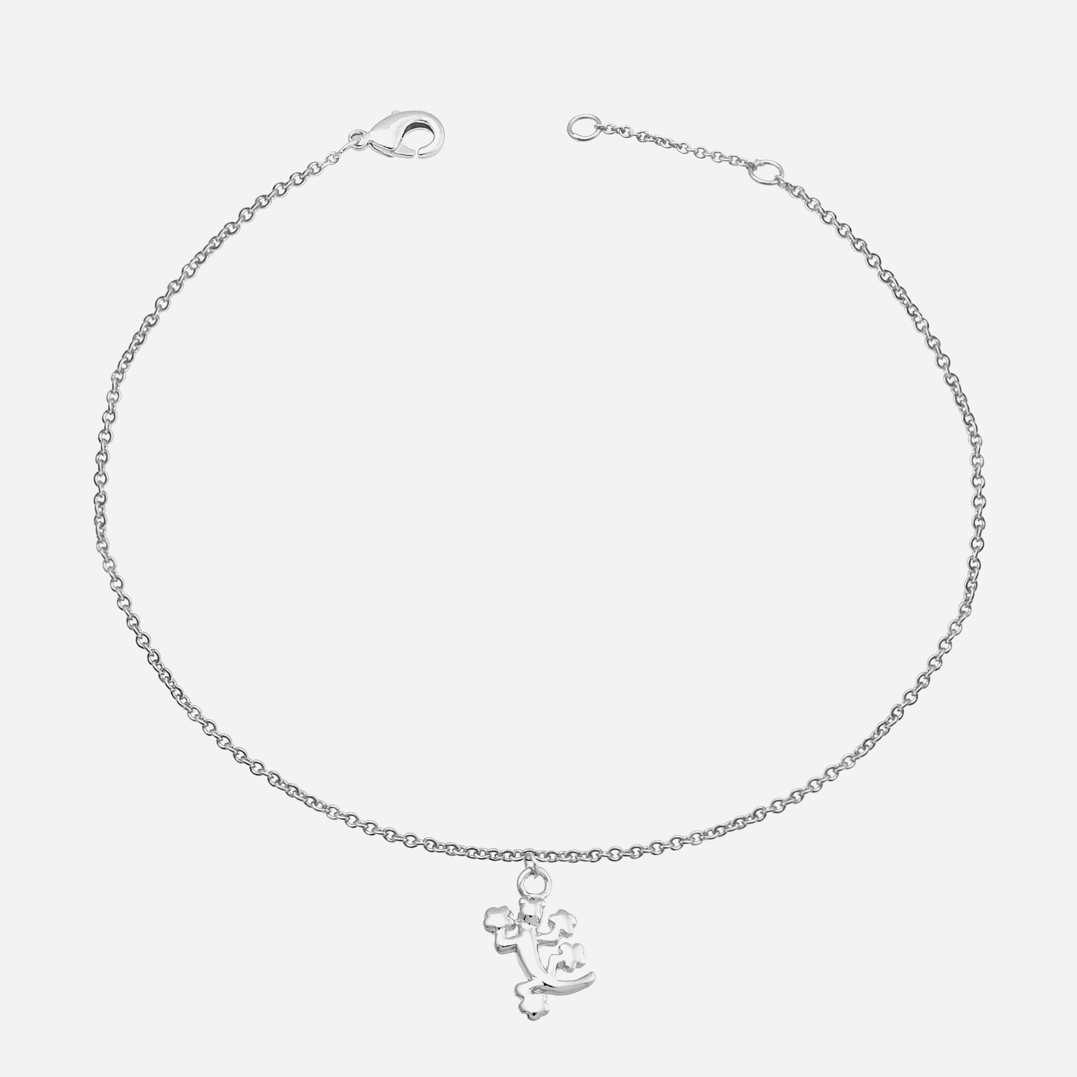 Une chaîne cheville en argent 925 rhodié résistant qui traverse le temps, pour un symbole de transformation qui dure et vous accompagne au quotidien dans votre évolution avec raffinement et brillance préservée.