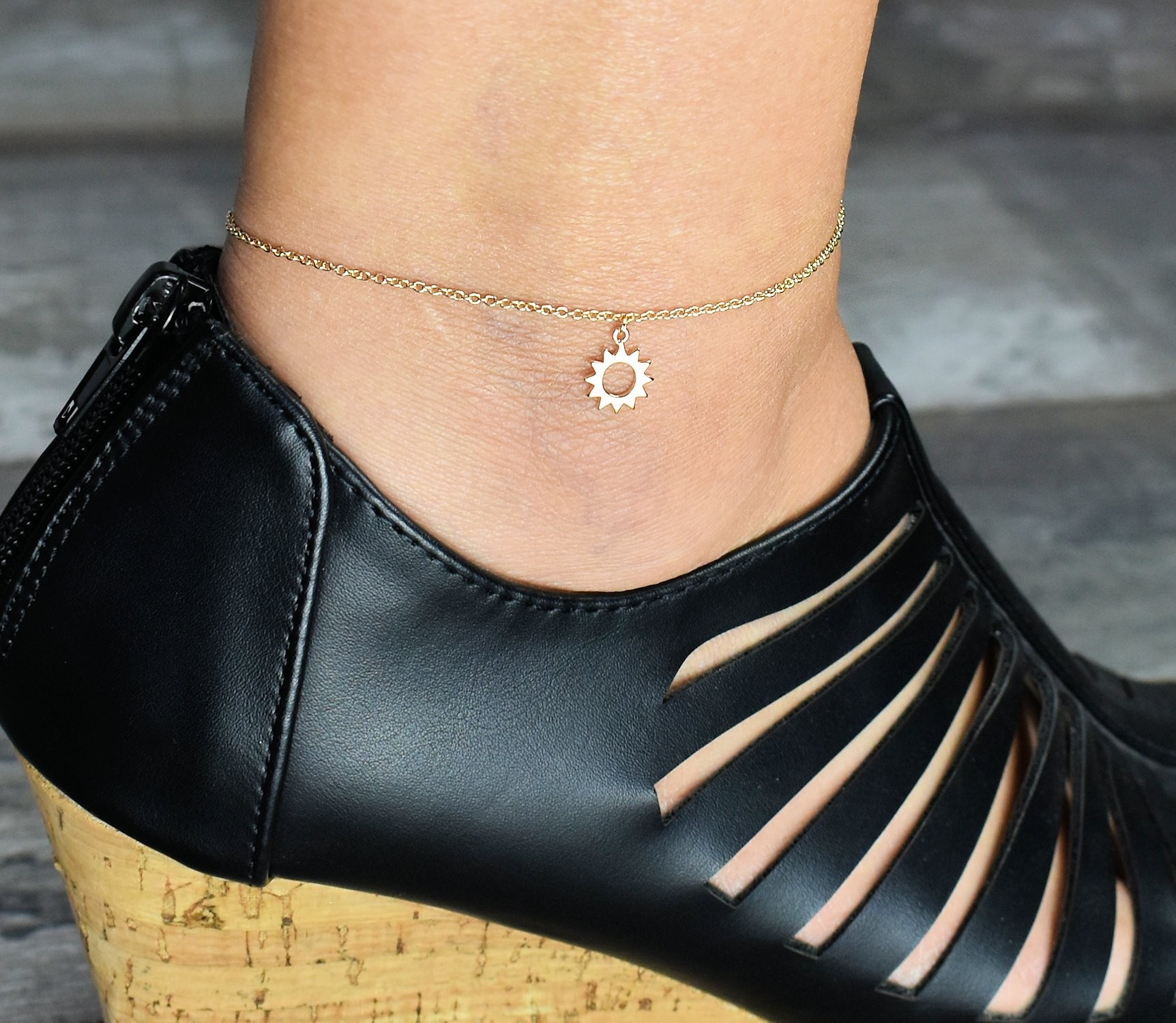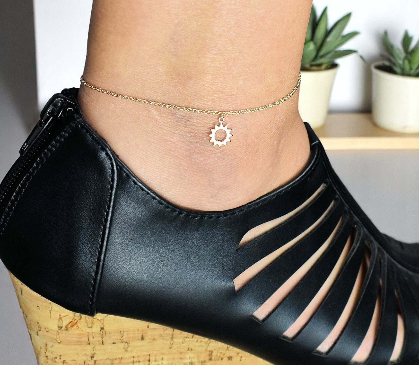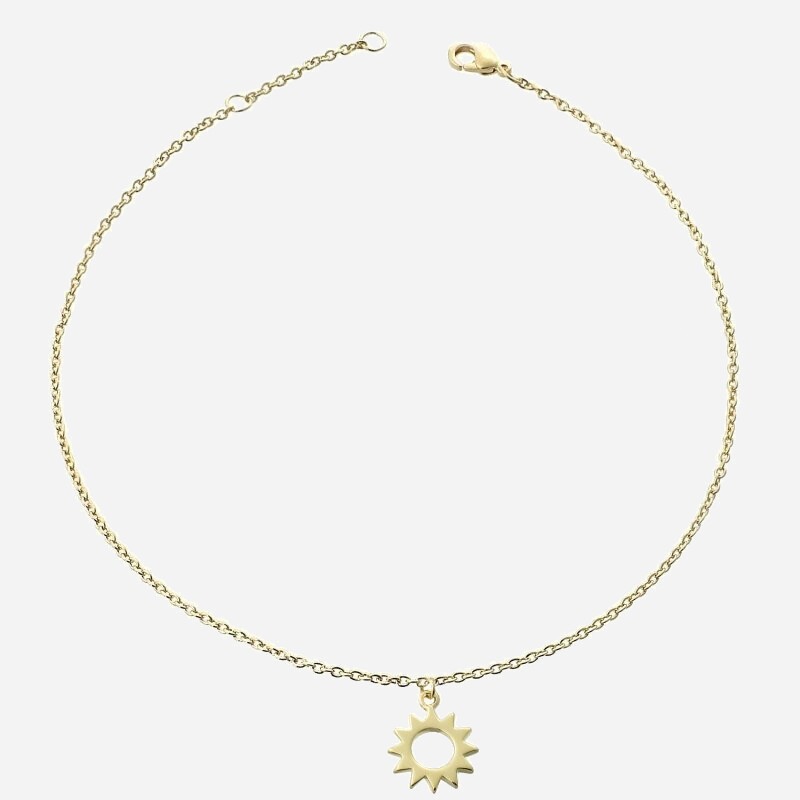 Une chaîne de cheville soleil plaqué or qui capture la lumière estivale