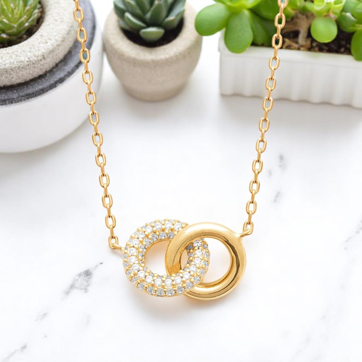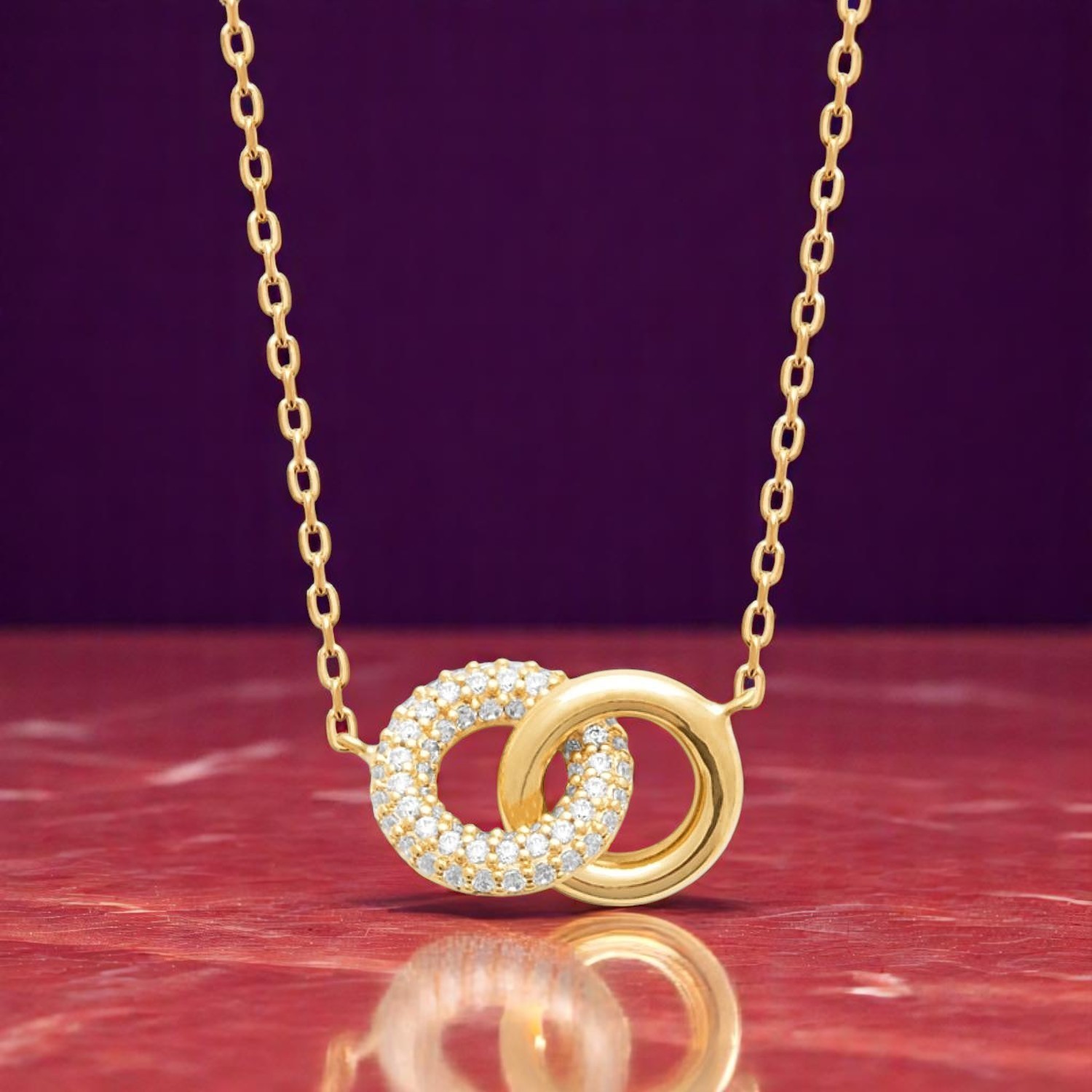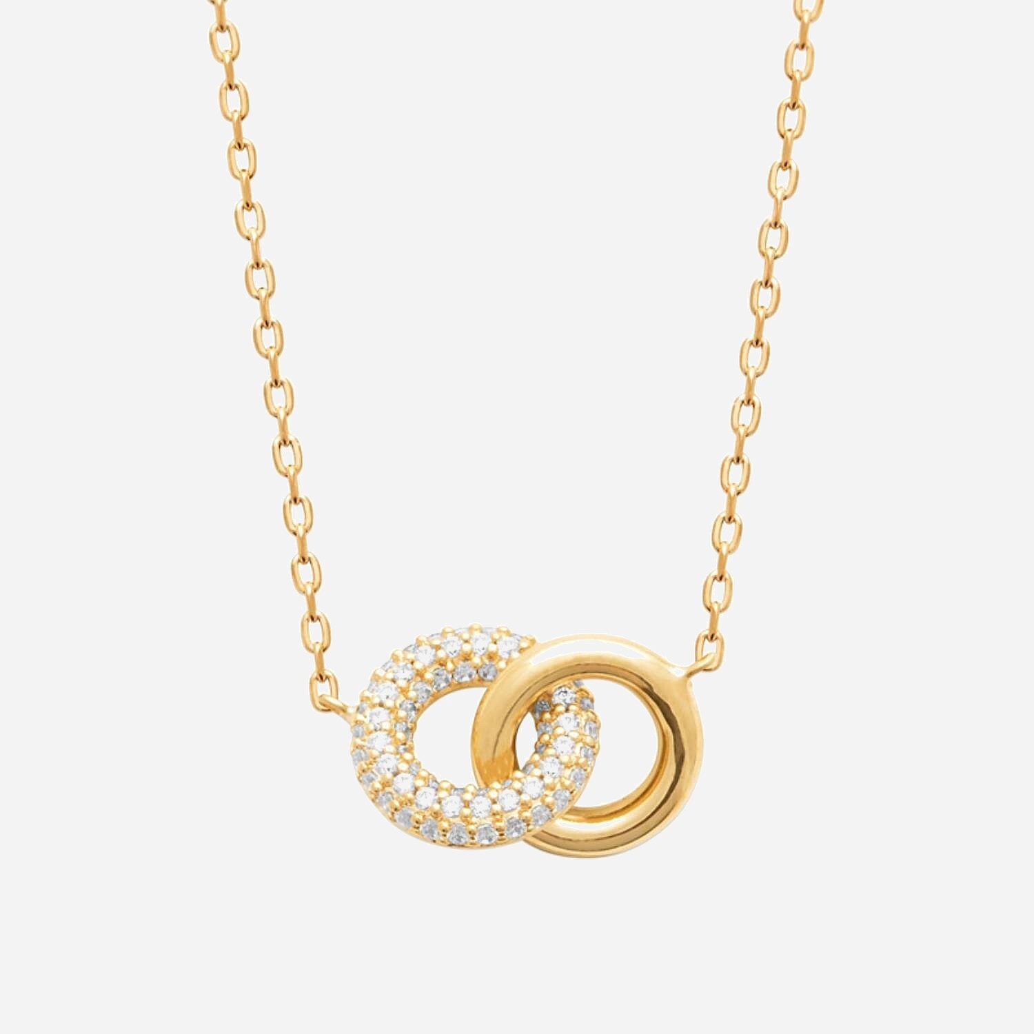 Collier 2 anneaux enlacés plaqué or oxyde zirconium : l’union dorée qui éblouit