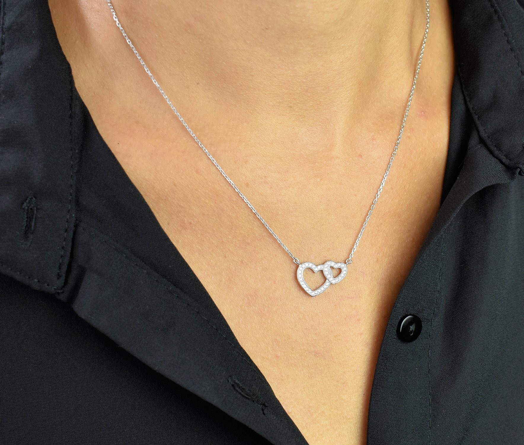Collier deux coeurs argent 925 zirconium : symbole universel d’amour