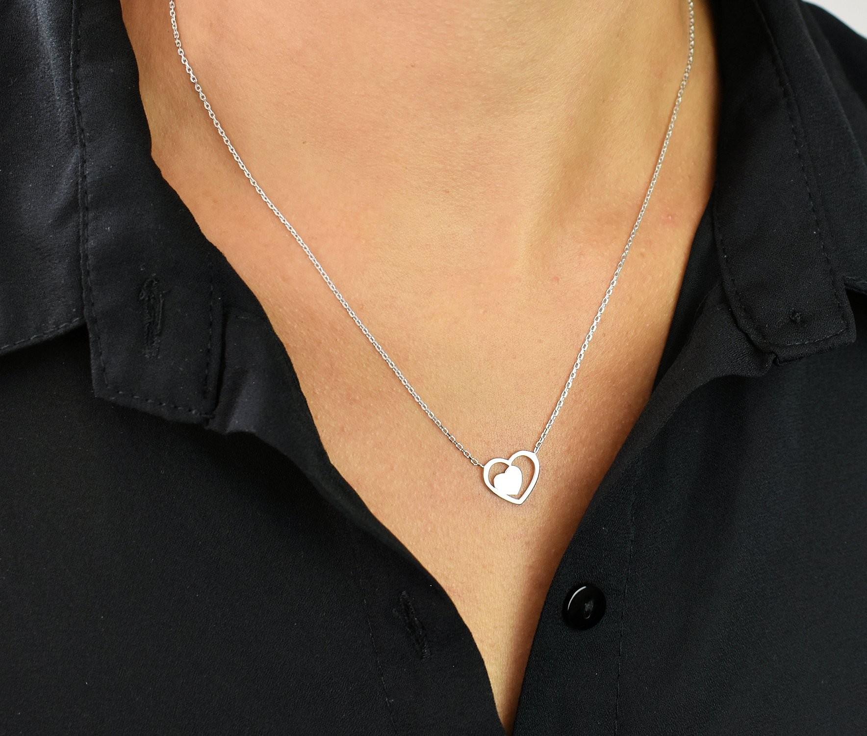 Le coeur est une forme universelle, utilisé pour représenter le symbole de la vie ou la représentation de l’amour dans toute sa splendeur. Ce collier 2 coeurs argent 925 rhodié unit un coeur ajouré et un coeur plein créant une harmonie des contrastes romantique élégante.