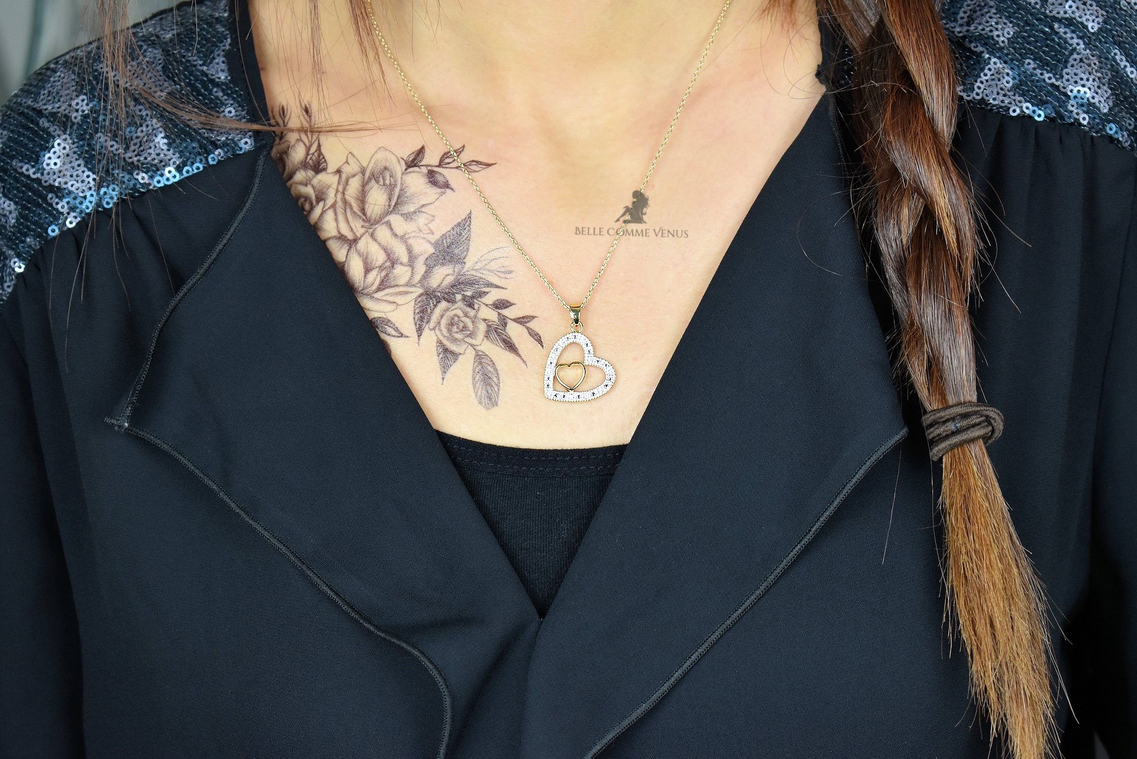 Le collier 2 cœurs plaqué or célèbre l’amour partagé avec brillance et délicatesse. Ce pendentif 2 cœurs ajourés serti d’oxyde de zirconium en plaqué or 750 3 microns 2 tons capture l’essence de la complicité dans un design romantique et lumineux.