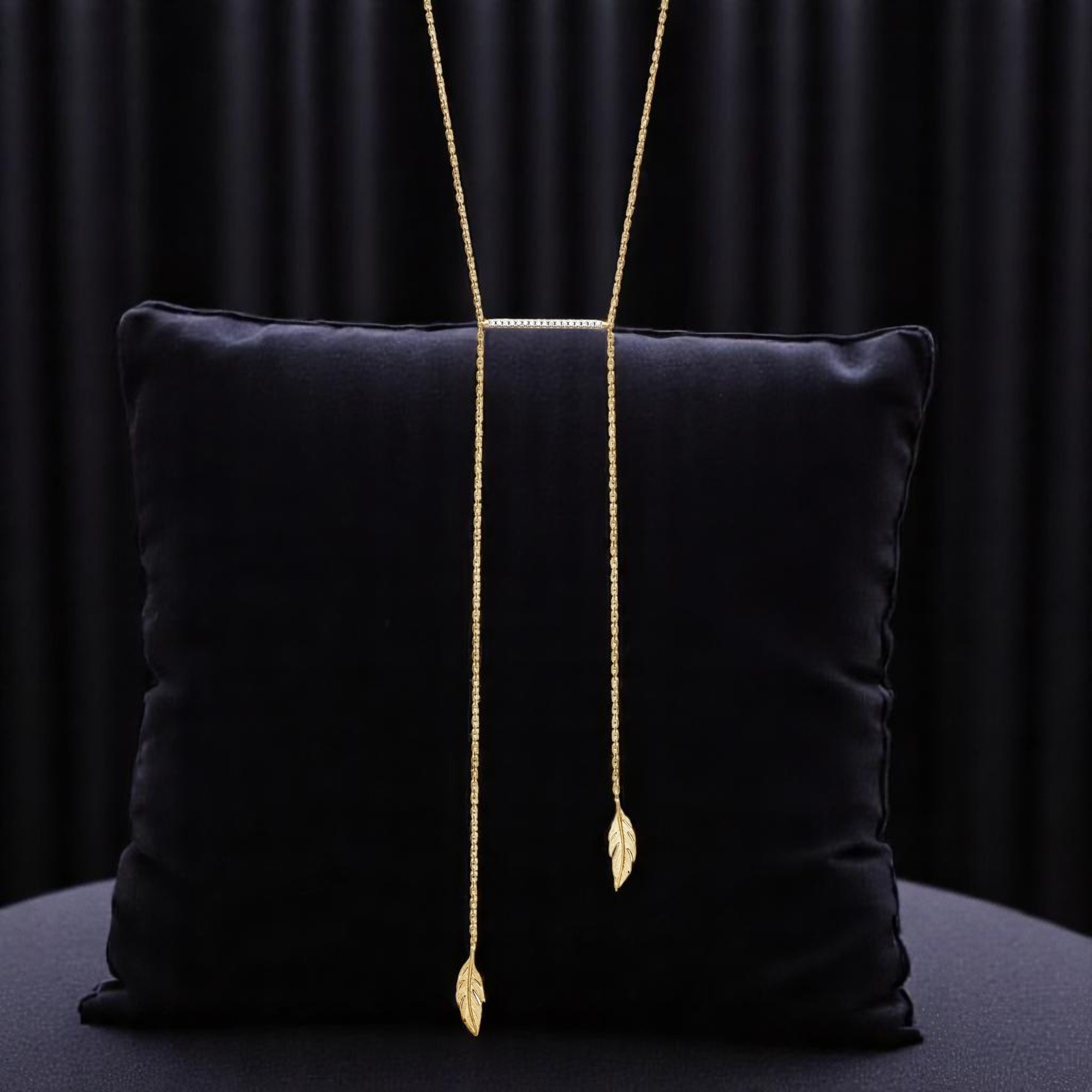 Le collier deux plumes pendantes plaqué or 750 avec barre sertie d’oxyde de zirconium célèbre légèreté et spiritualité avec contraste bicolore sophistiqué. Les 2 plumes évoquent liberté et sagesse tandis que le design 2 tons apporte dimension moderne, créant un bijou qui sublime votre cou avec brillance scintillante et raffinement spirituel harmonieux.