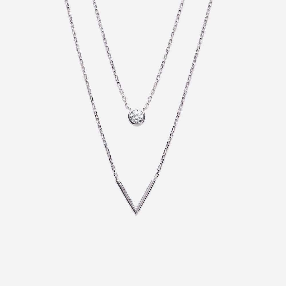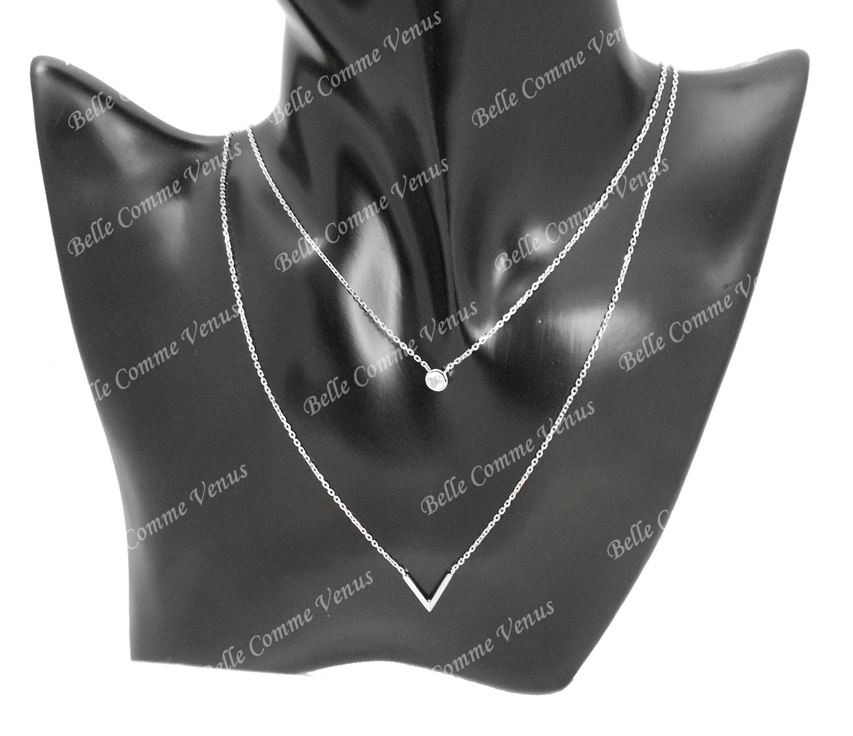 Collier 2 rangs argent 925 forme v oxyde zirconium : géométrie scintillante moderne