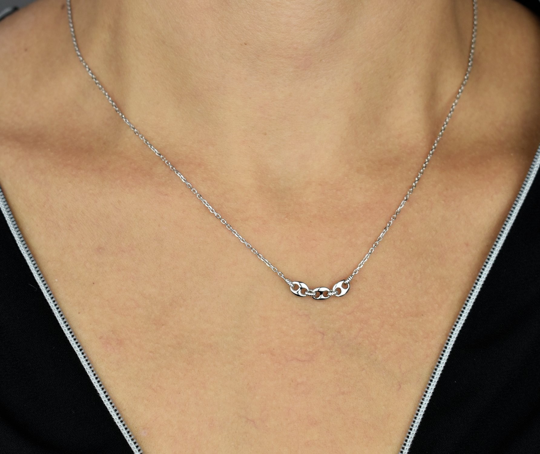 Composé de trois grains de café reliés par un anneau à l'effet tressé, ce collier en argent 925 rhodié est un véritable bijou d'élégance et de raffinement.