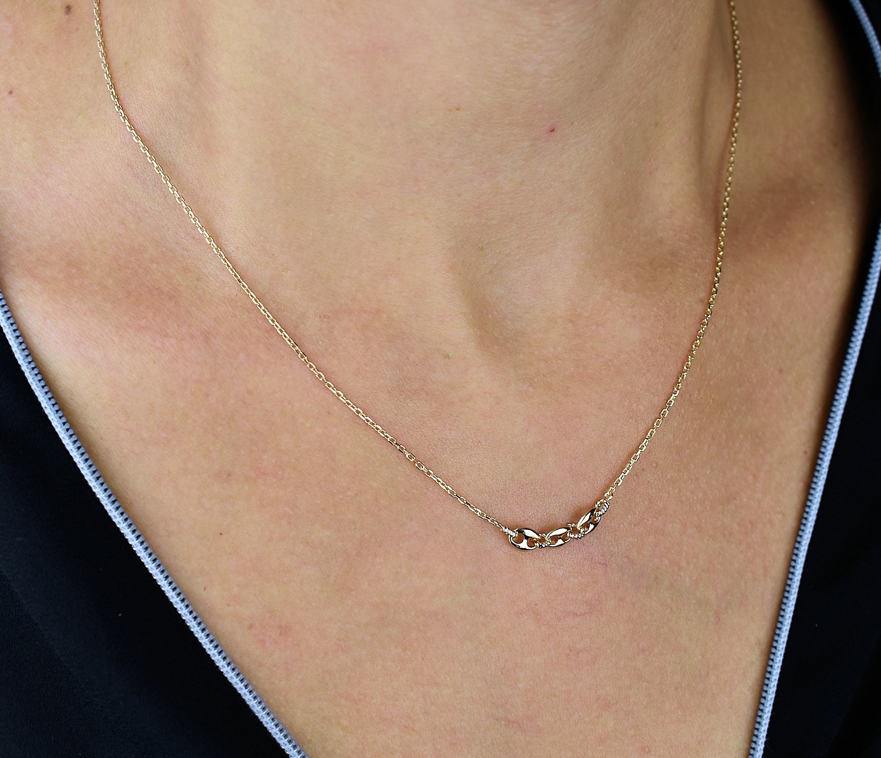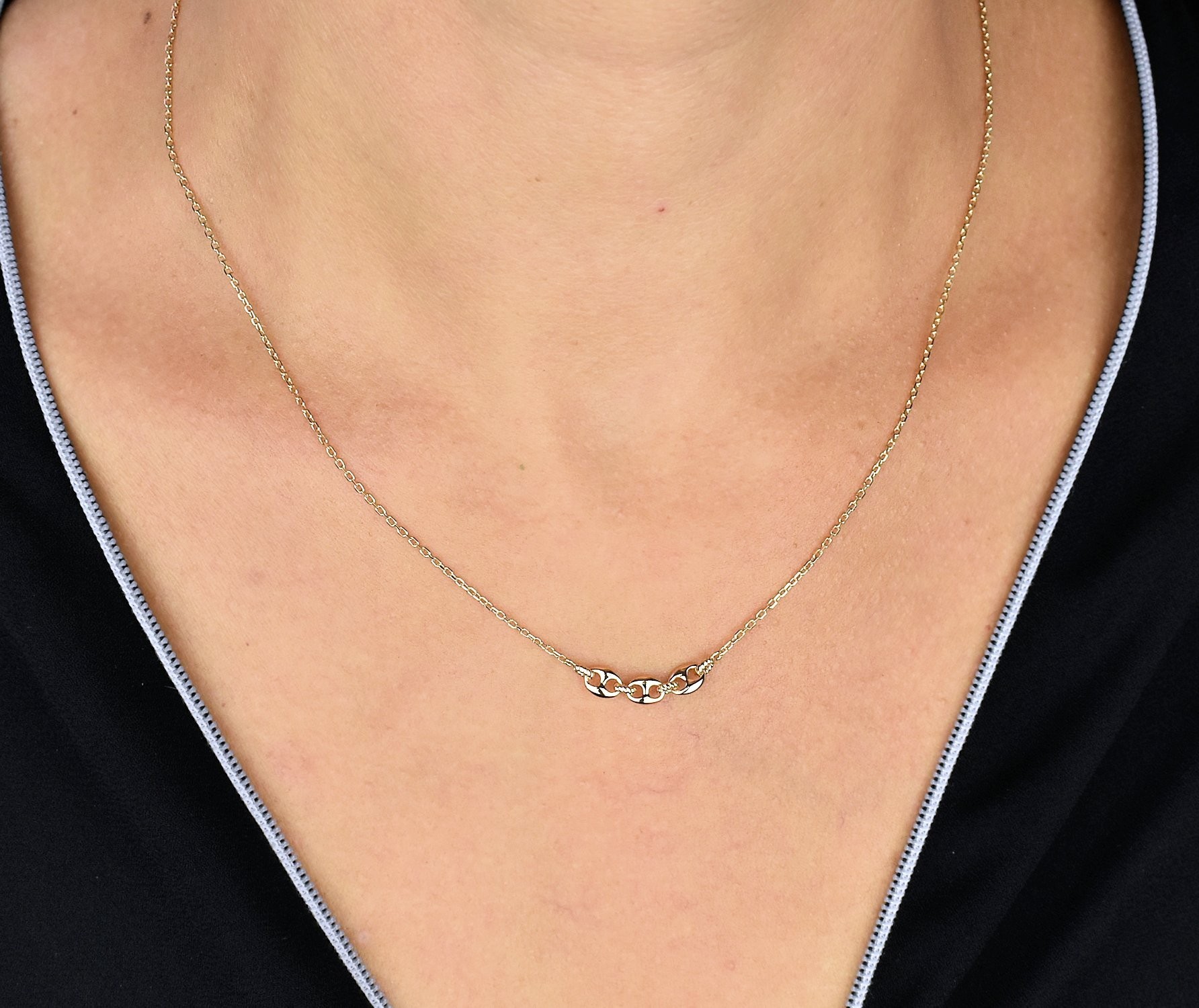 La chaîne du collier mesure 45 cm de longueur, avec un anneau de rappel à 40 cm et 42 cm, vous permettant de l'ajuster à la longueur souhaitée. Les maillons grains de café ont une dimension de 0.6 cm de largeur et 0.4 cm de hauteur, créant un délicat effet tressé qui attire le regard.