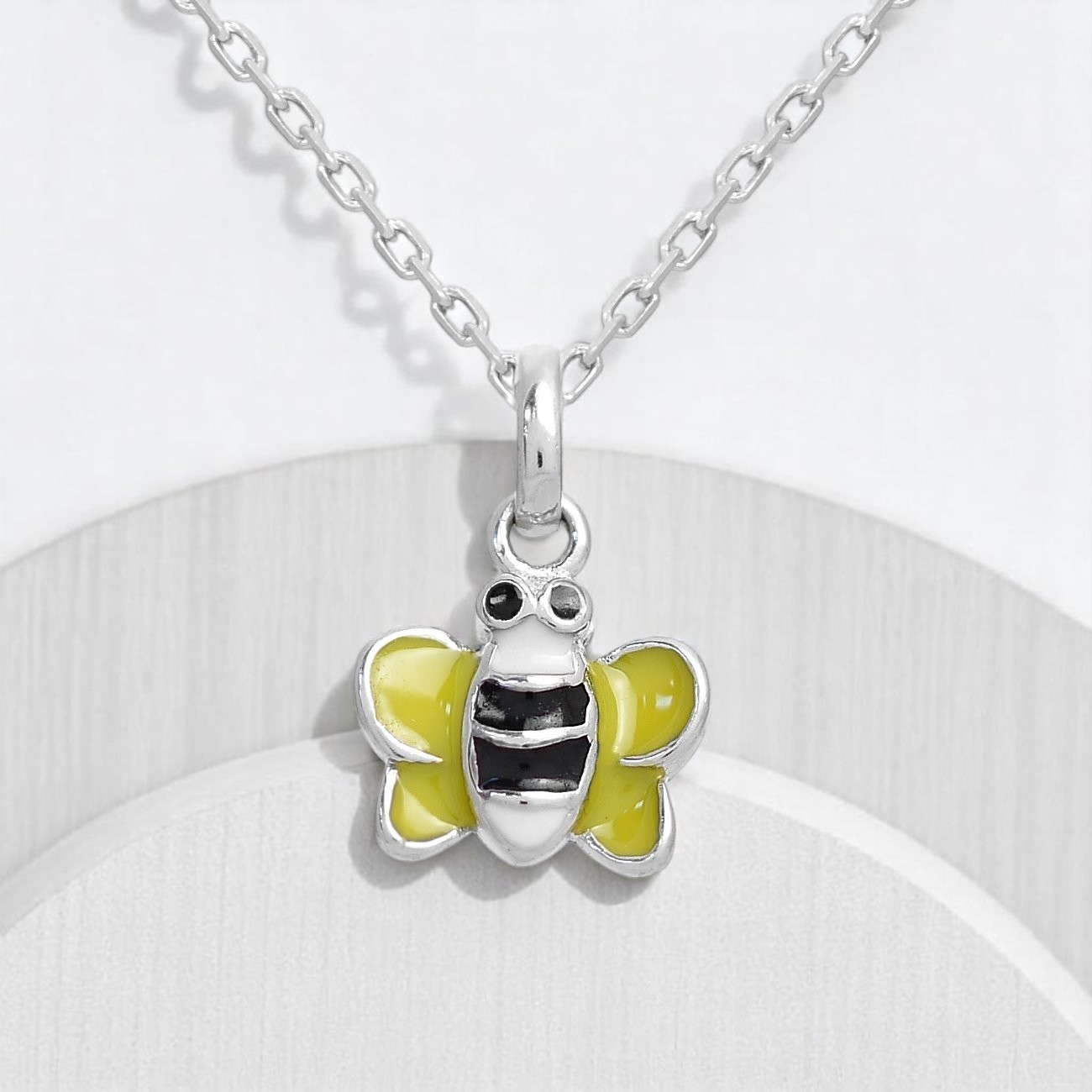 L'émail jaune, noir et blanc apporte une sensation de vivacité et attire l'attention sur le pendentif représentant une abeille. Votre enfant adorera porter ce collier, qui est à la fois ludique et tendance.