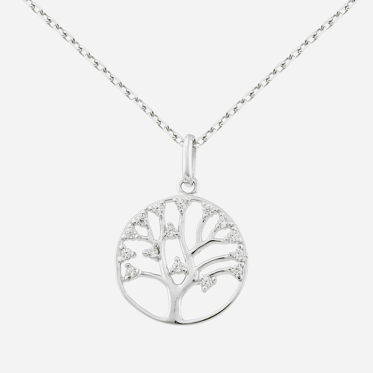 Le collier arbre de vie argent 925 rhodié orné d’oxydes de zirconium ajoute une touche d’élégance et de symbolisme à votre style. Ce collier arbre vie célèbre le symbole universel du cycle de la vie avec éclat scintillant et raffinement spirituel.