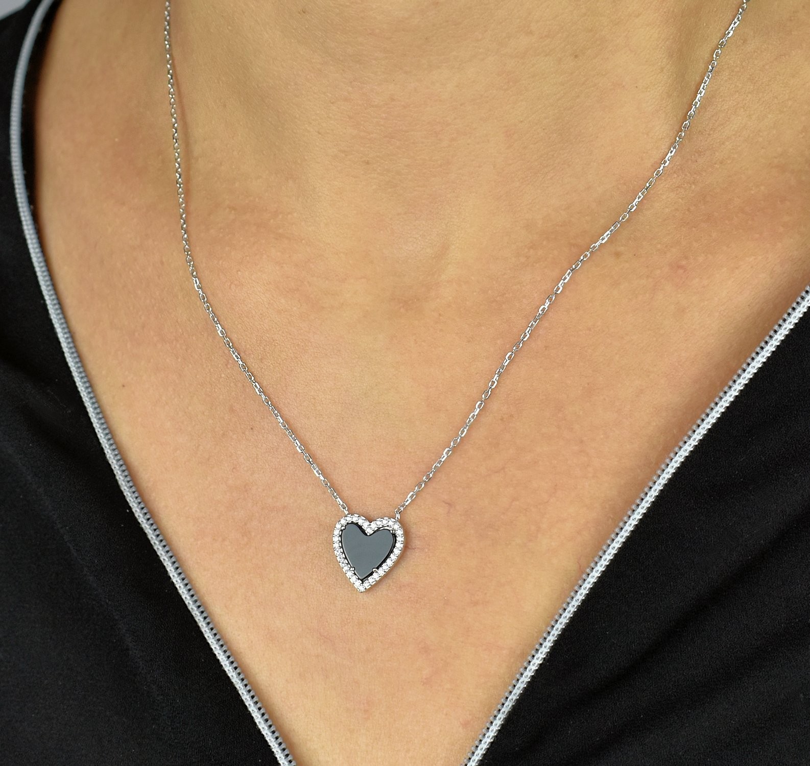 Collier Argent Agate Cœur Zirconium : La Douceur Minérale au Décolleté